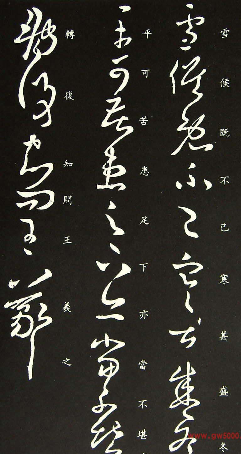 释文:雪候既不已,寒甚盛,冬平可。苦患,足下亦當不堪之。轉復知問。王羲之。