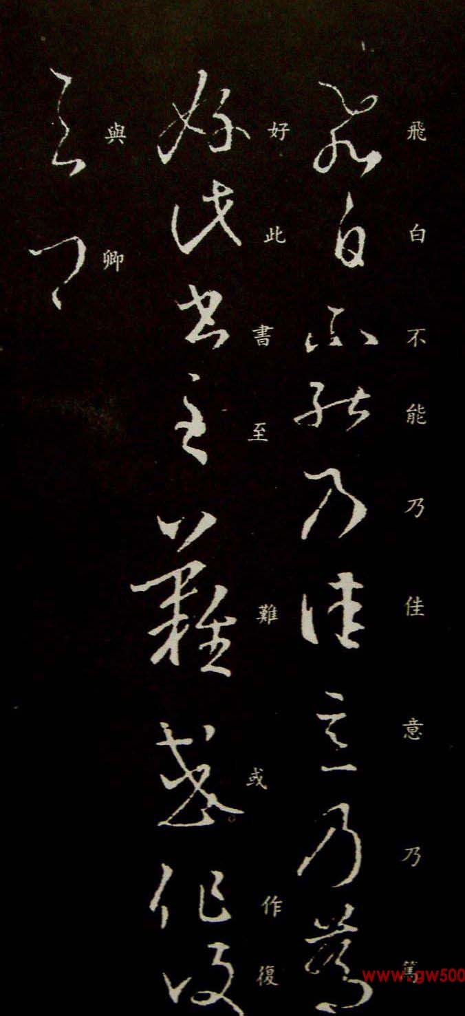 王羲之草书《飞白帖》,又名“飞白不能帖”,3行,19字。入刻《淳化阁帖》、《大观帖》、《澄清堂帖》、《绛帖》、《星风楼》、《宝贤堂》。