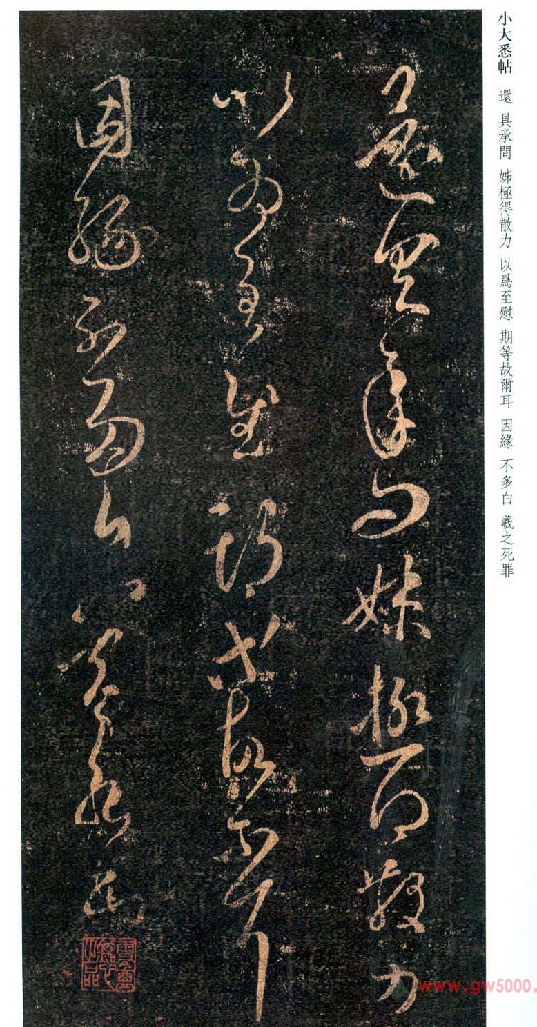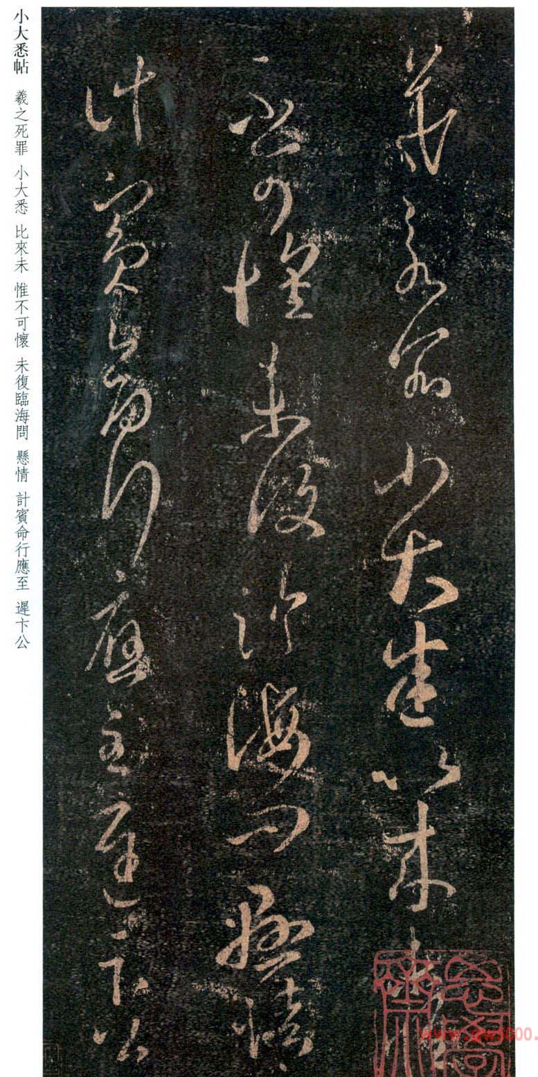 王羲之草书《小大悉帖》,又名“小大帖”,榻本。6行,57字。此帖被辨为伪帖。入刻《淳化阁帖》、《大观帖》、《宝晋斋帖》、《星风楼帖》。