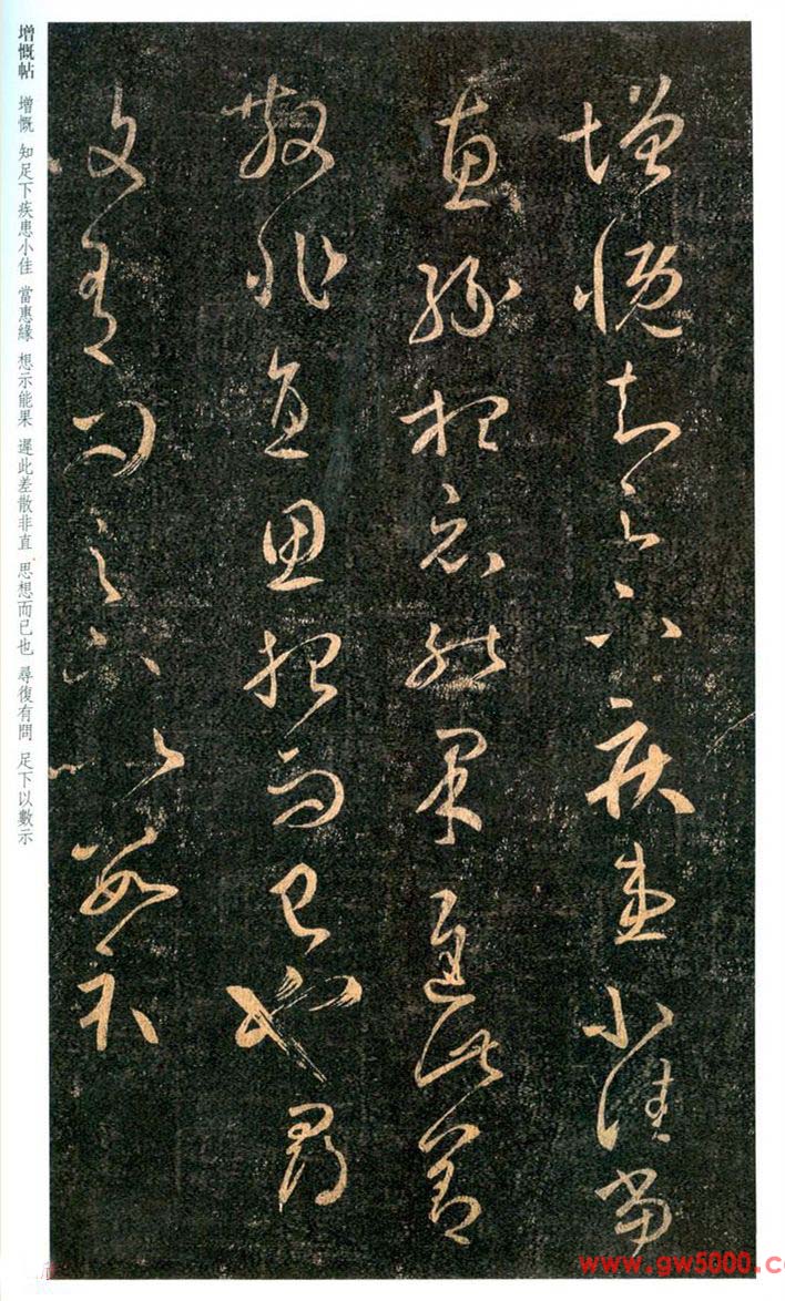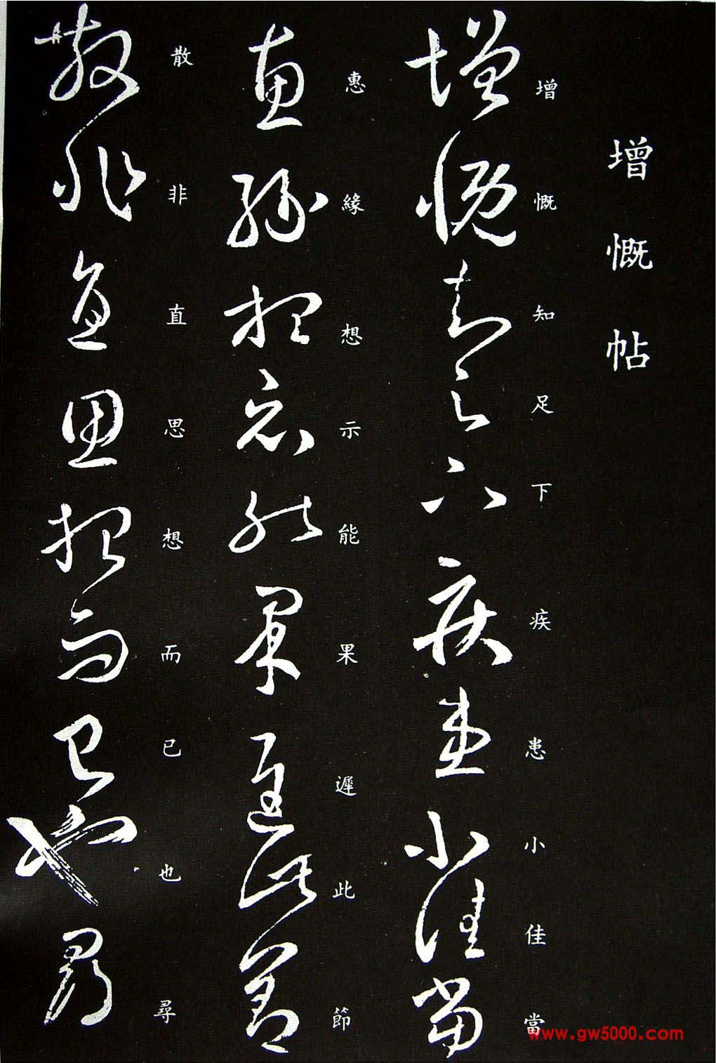 王羲之书法《增慨帖》,4行,36字。草书。入刻《淳化阁帖》等。