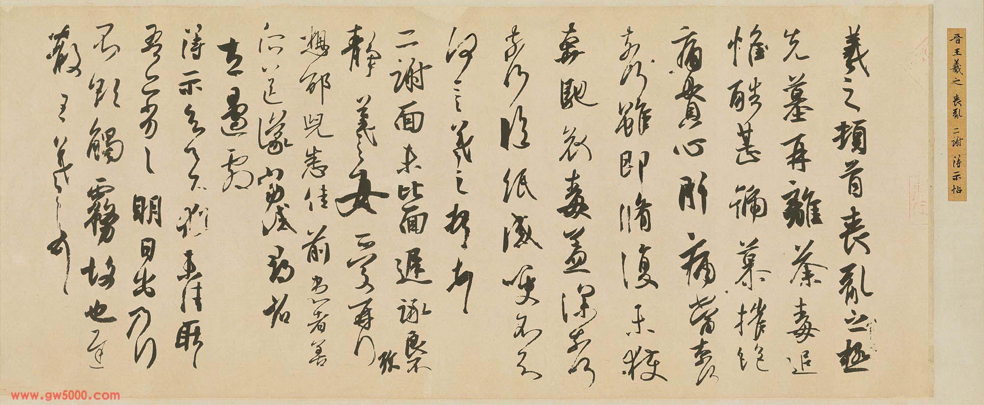 王羲之《二谢帖》摹本,日本皇室宫内厅三之丸尚藏馆藏