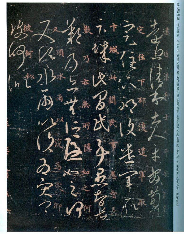 王羲之草书《远近清和帖》,6行,48字。入刻《澄清堂帖》(小万柳堂本)。
