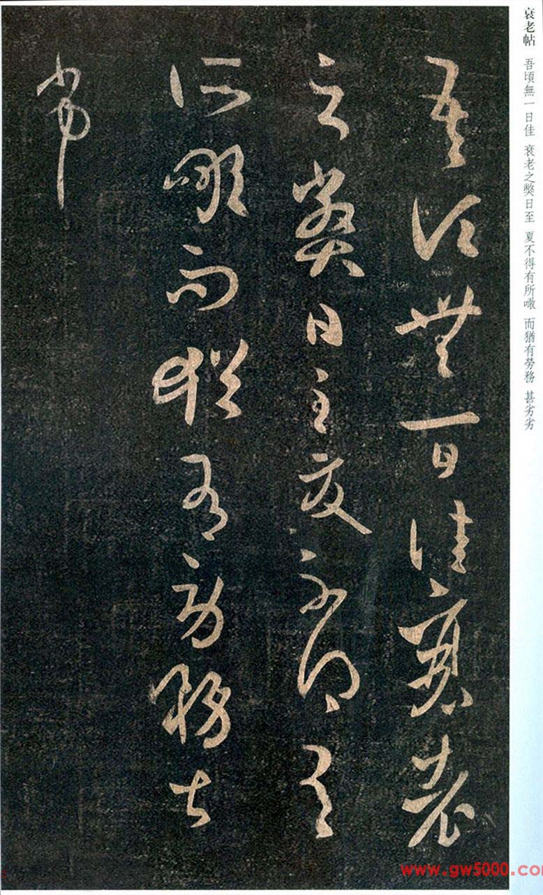 王羲之草书欣赏《衰老帖》拓本,四行,二十六字。此帖亦收刻于《澄清堂帖》。