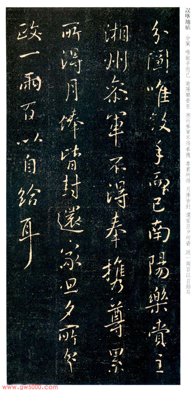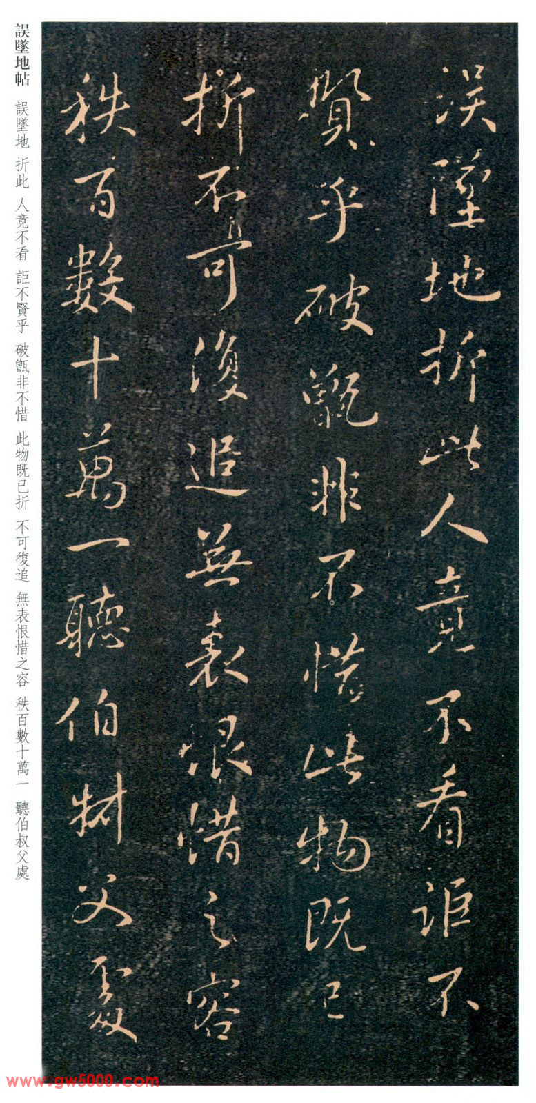 王羲之行书《误坠地帖》,8行,86字,《二王帖》、《宝晋斋帖》亦收刻。
