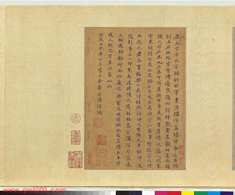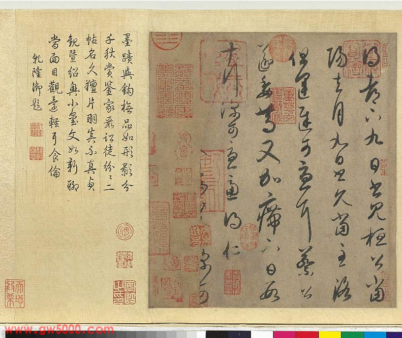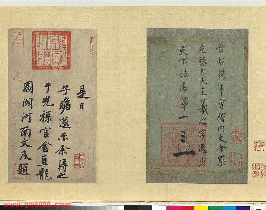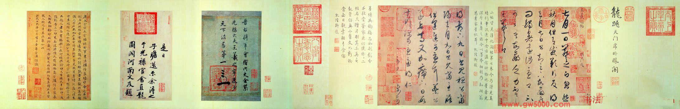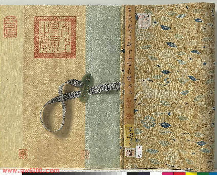 东晋王羲之行草书法《七月都下帖》纸本,是《秋月帖》和《都下帖》二帖合装裱为一卷,《七月帖》经南宋高宗(1127-1162)内府收藏后,曾归金章宗(1189-1208),此帖行笔流畅散逸,却乏遒力。《都下帖》末行有几字仅存其半,“仁”字以下二十七字裁割。帖中所提桓公是指桓温,蔡公为蔡谟,此帖作成于356年(穆帝永和十二年),此时王羲之已辞官年余,但仍不能忘怀朝廷戎机。 明时此帖在民间,清时又收入内府。现中国台北故宫博物院藏。