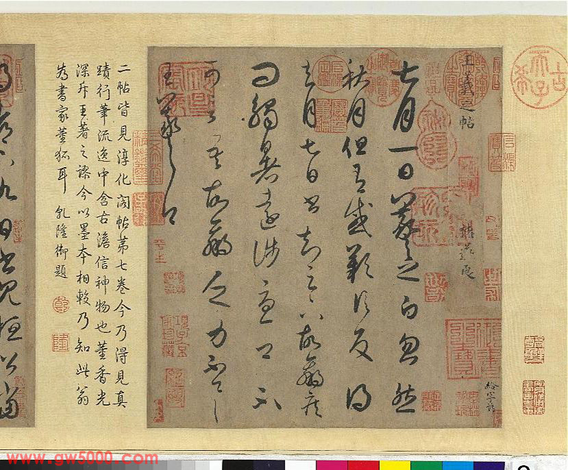 《都下帖》释文:得都下九日书。见桓公当阳去月九日书。久当至洛,但运迟可忧耳。蔡公遂危笃,又加下,日数十行,深可忧虑。得仁(祖廿六日问,疾更危笃,深可忧! 当今人物眇然,而艰疾若此,令人短气。)(此帖‘仁’字下裁去27 字。)