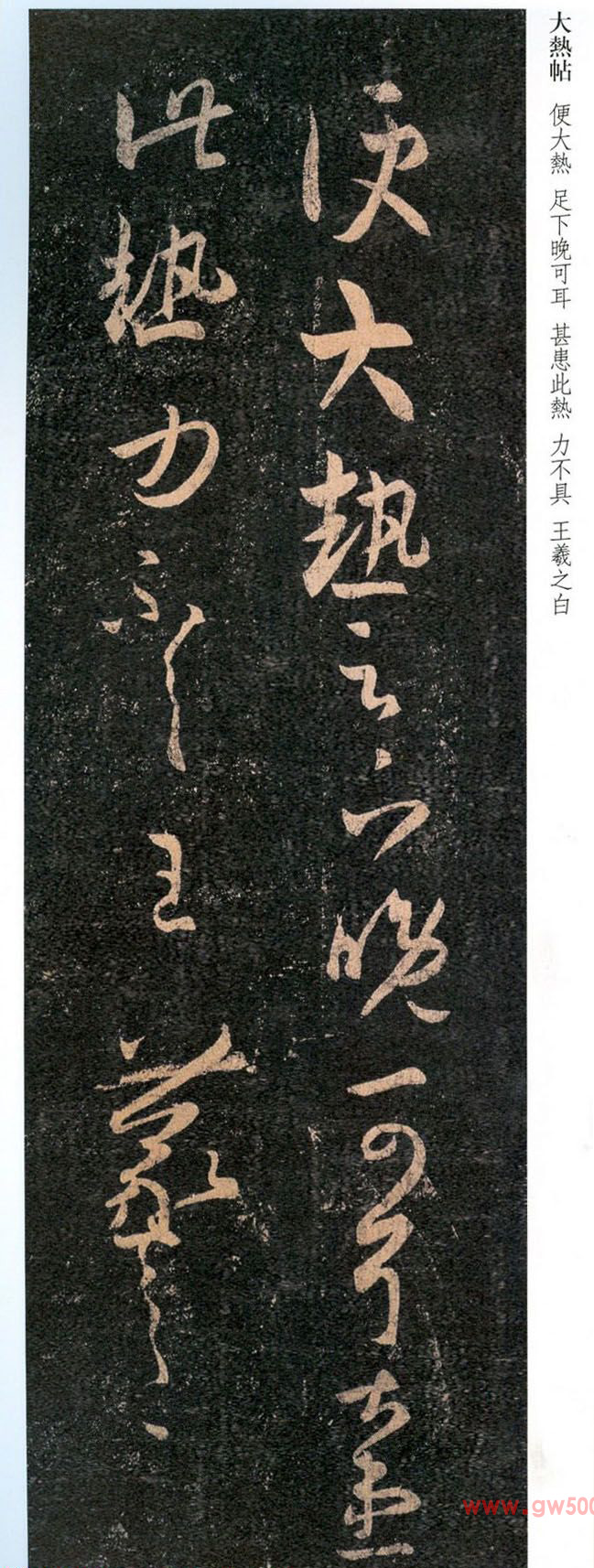 释文:便大热,足下晚可耳。甚患此热。力不一一。王羲之白。