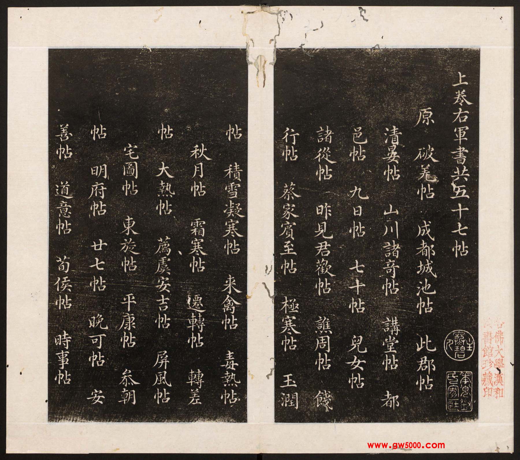 劉園集帖 : 20卷 / 劉恕集. 原刻. 劉恕, 嘉慶11年 [1806] . 拓本, 經摺裝, 墨紙尺寸: 25.6 x 14 cm. 清拓本