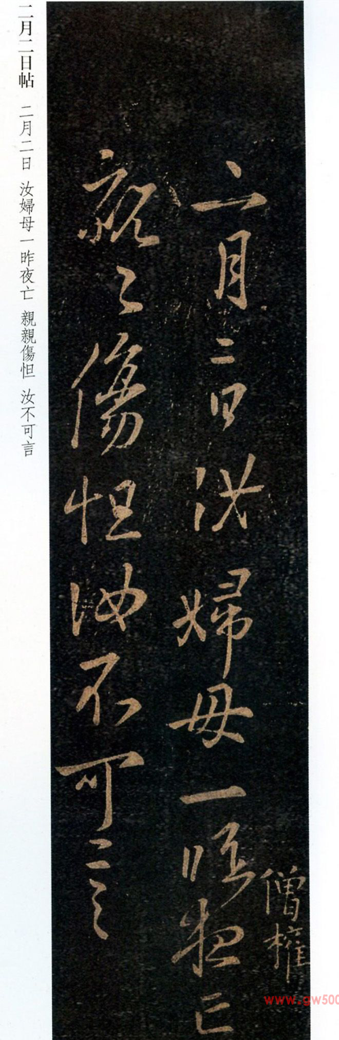 释文:二月二日,汝妇母一昨夜亡,亲亲伤怛,汝不可言。