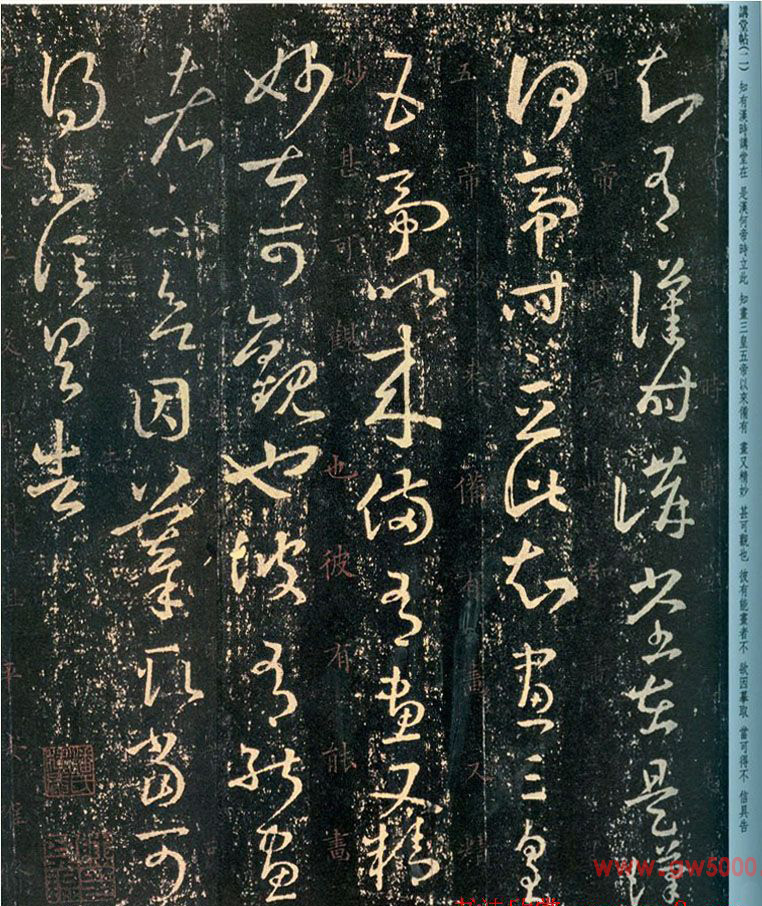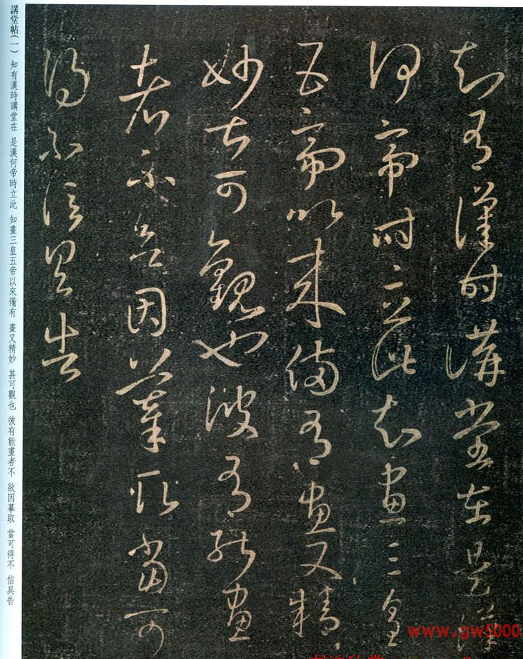 王羲之草书信札欣赏《讲堂帖》两种,又称《汉时帖》,6行,49字。此帖系王羲之询问友人所在地的汉代讲堂遗迹以及内部精美图绘的信札,并表达了希望得见摹本的想法。