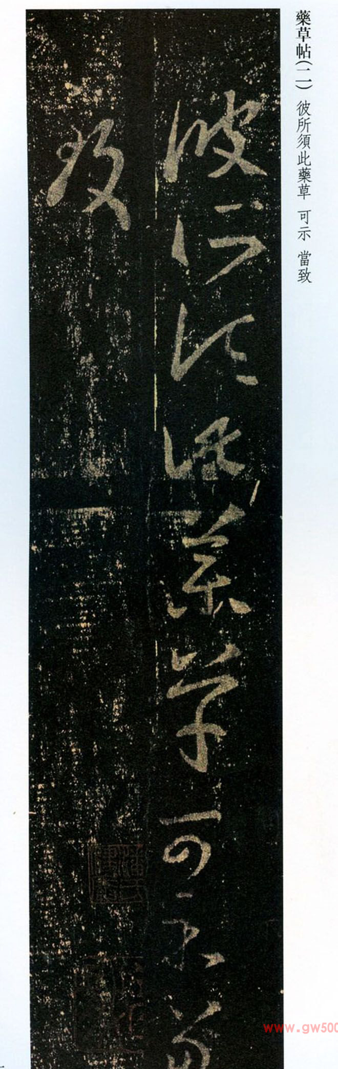 王羲之草书《药草帖》两种,2行,9字。《右军书记》著录。这里的药草是指治疗因服食五石散而生病痛的药草。