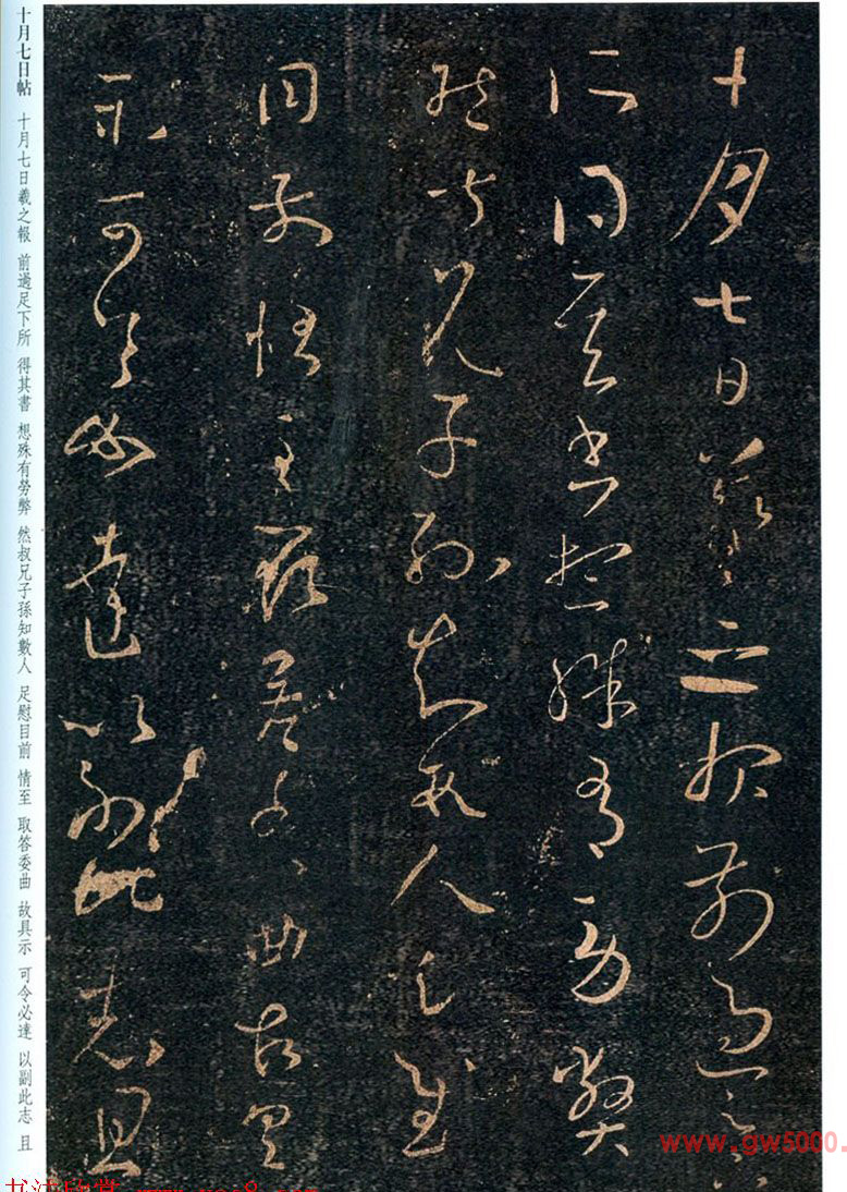王羲之草书欣赏《十月七日帖》又称《劳弊帖》11行,100字。入刻《淳化阁帖》等。