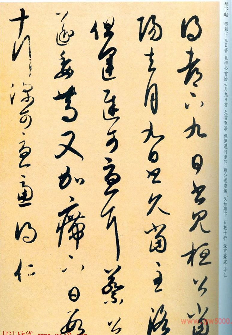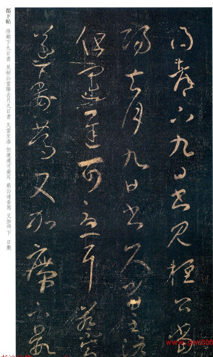释文:得都下九日书。见桓公当阳去月九日书。久当至洛,但运迟可忧耳。蔡公遂委笃,又加廗下,日数十行,深可忧虑。得仁