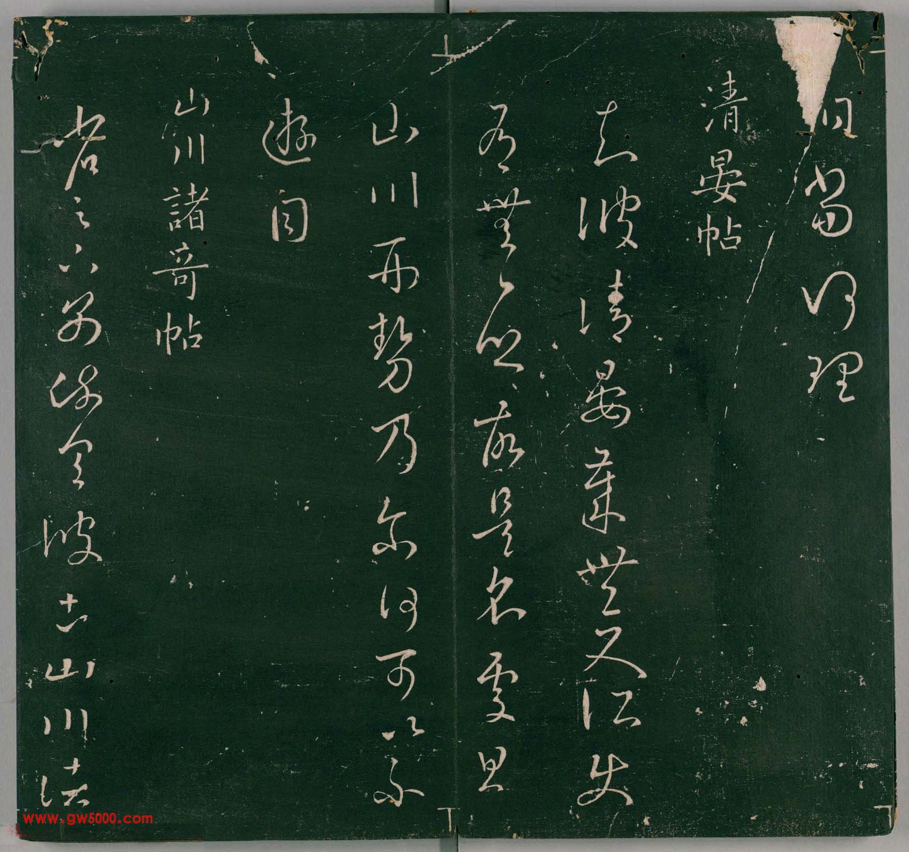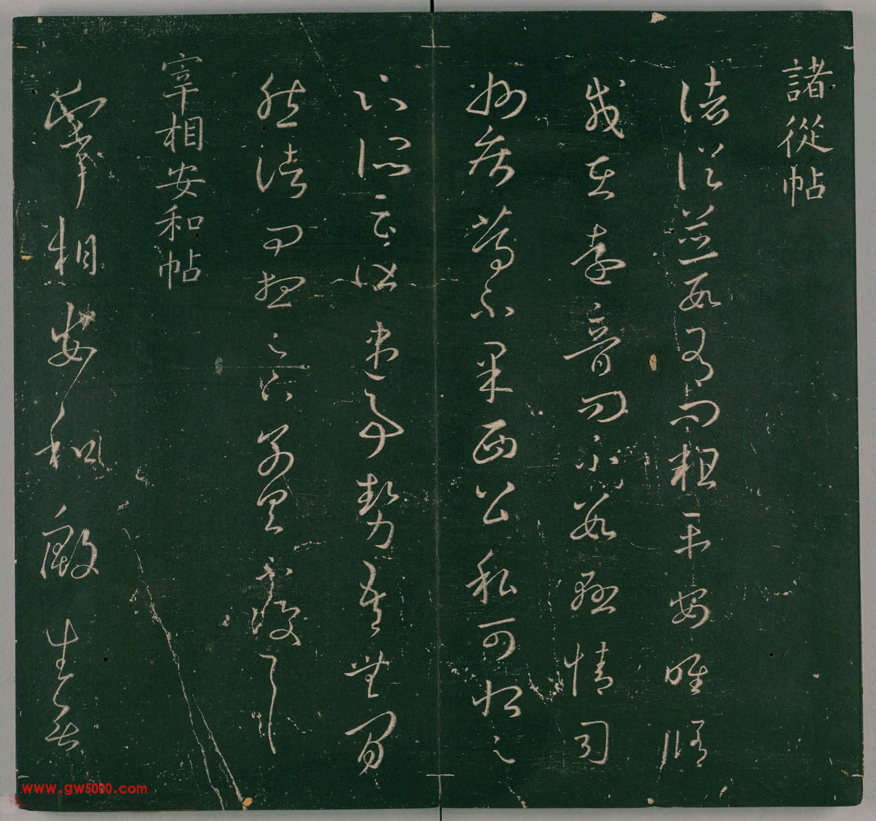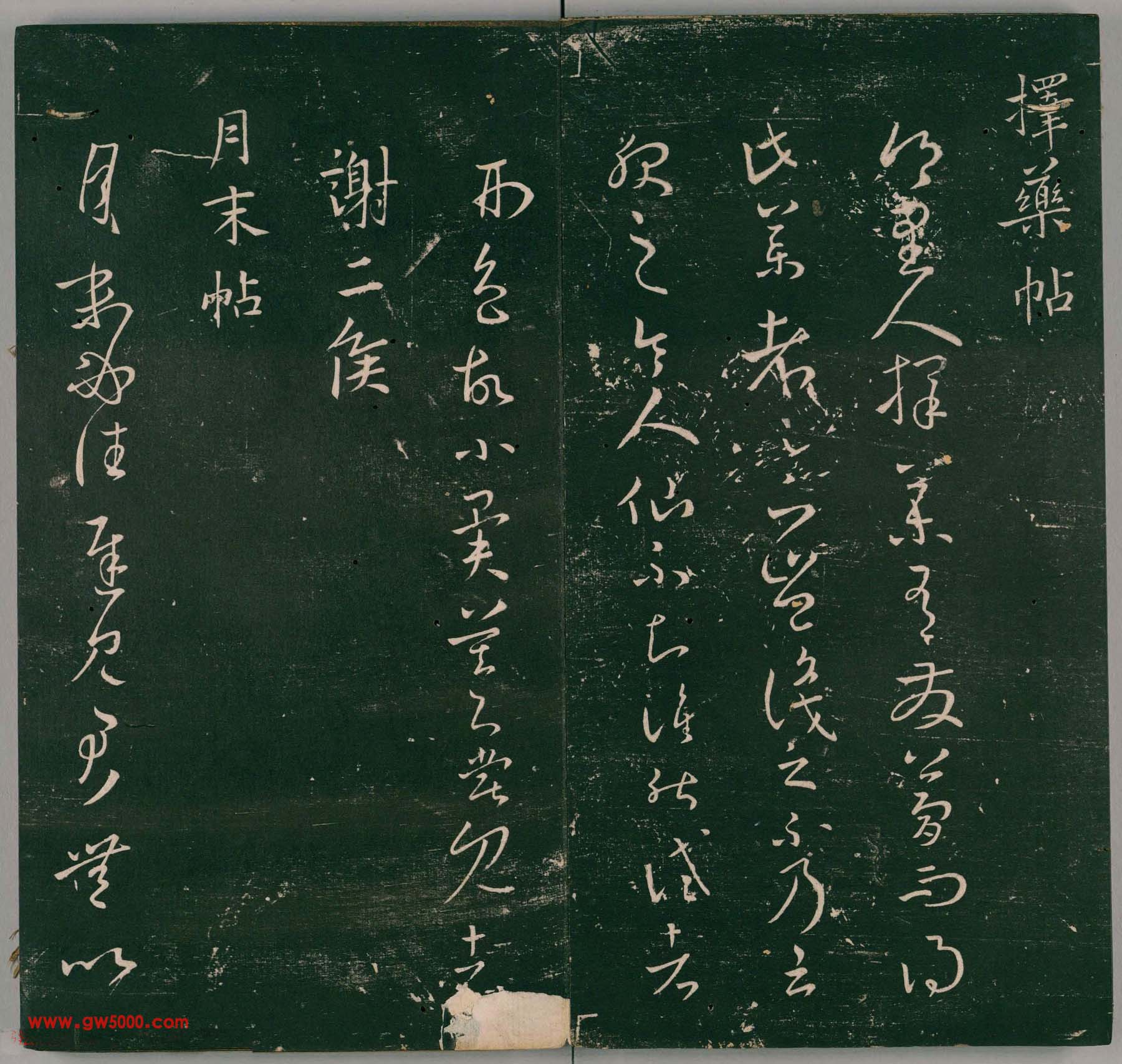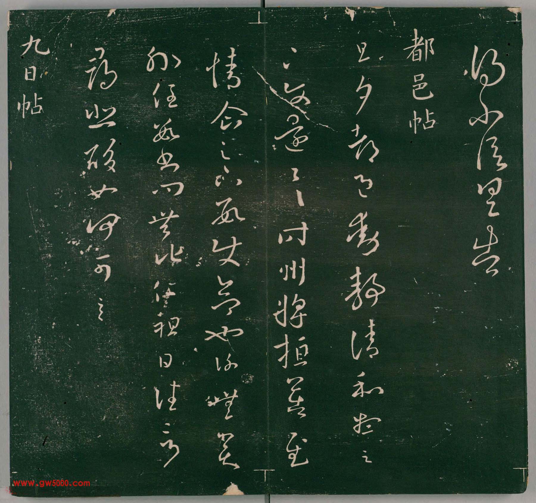 二王像:右軍(王羲之),破羌帖,成都城池帖,此郡帖,清晏帖,講堂帖,都邑帖,七十帖,兒女帖,諸從帖,宰相安和帖,昨見君歡帖,谯周帖,餞行帖,蔡家賓至帖,極寒帖,玉潤帖,積雪凝寒帖,來禽帖,毒熱帖,秋月帖,霜寒帖