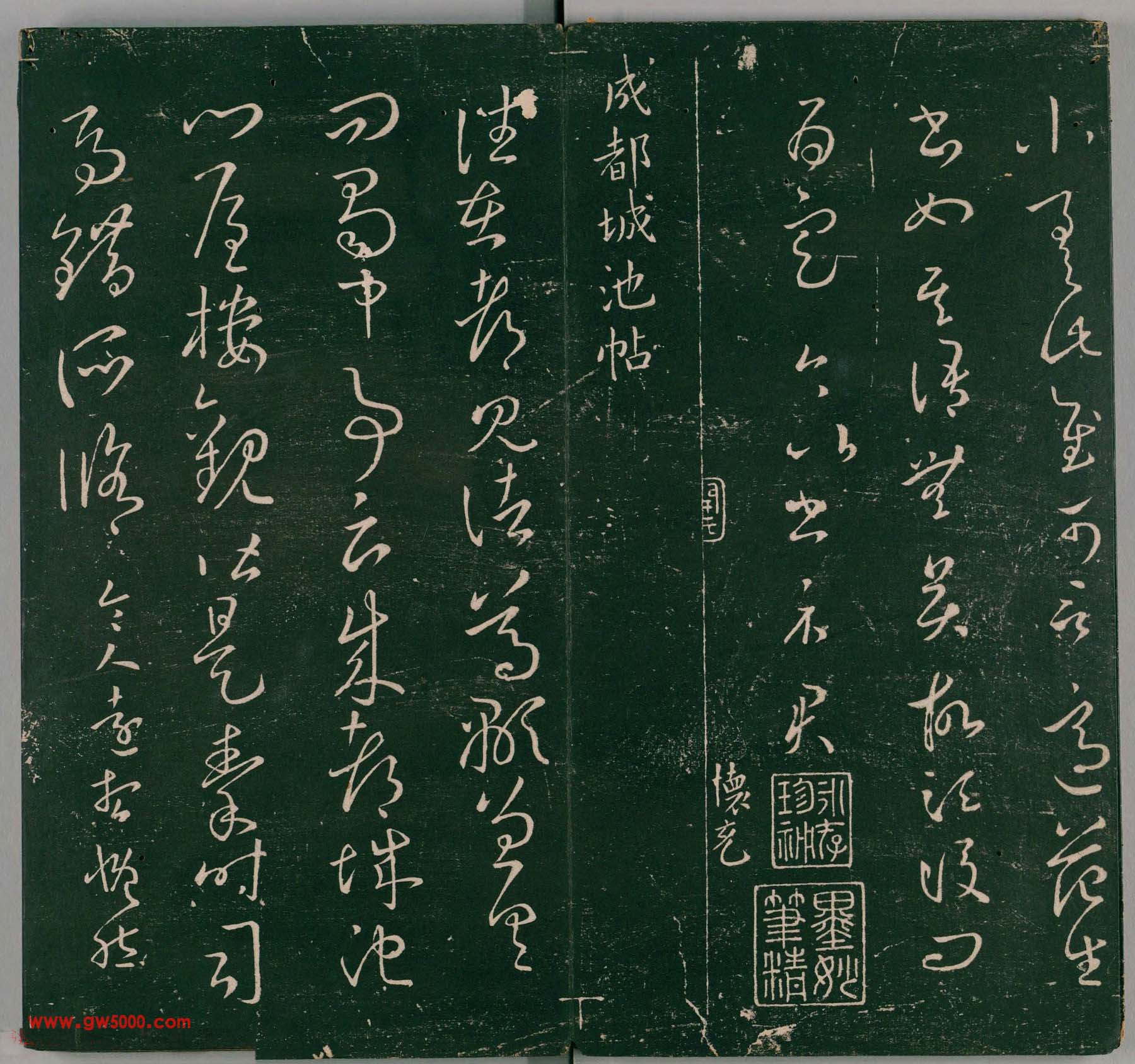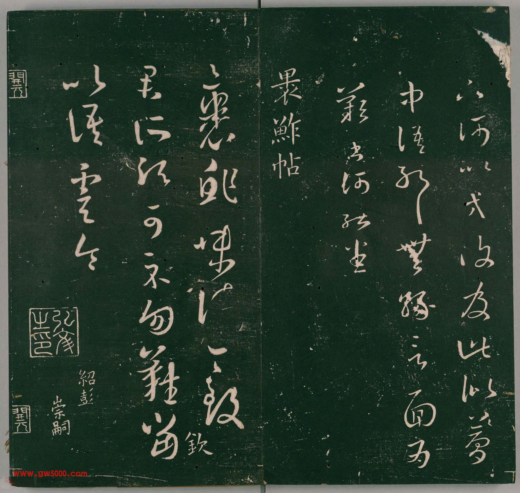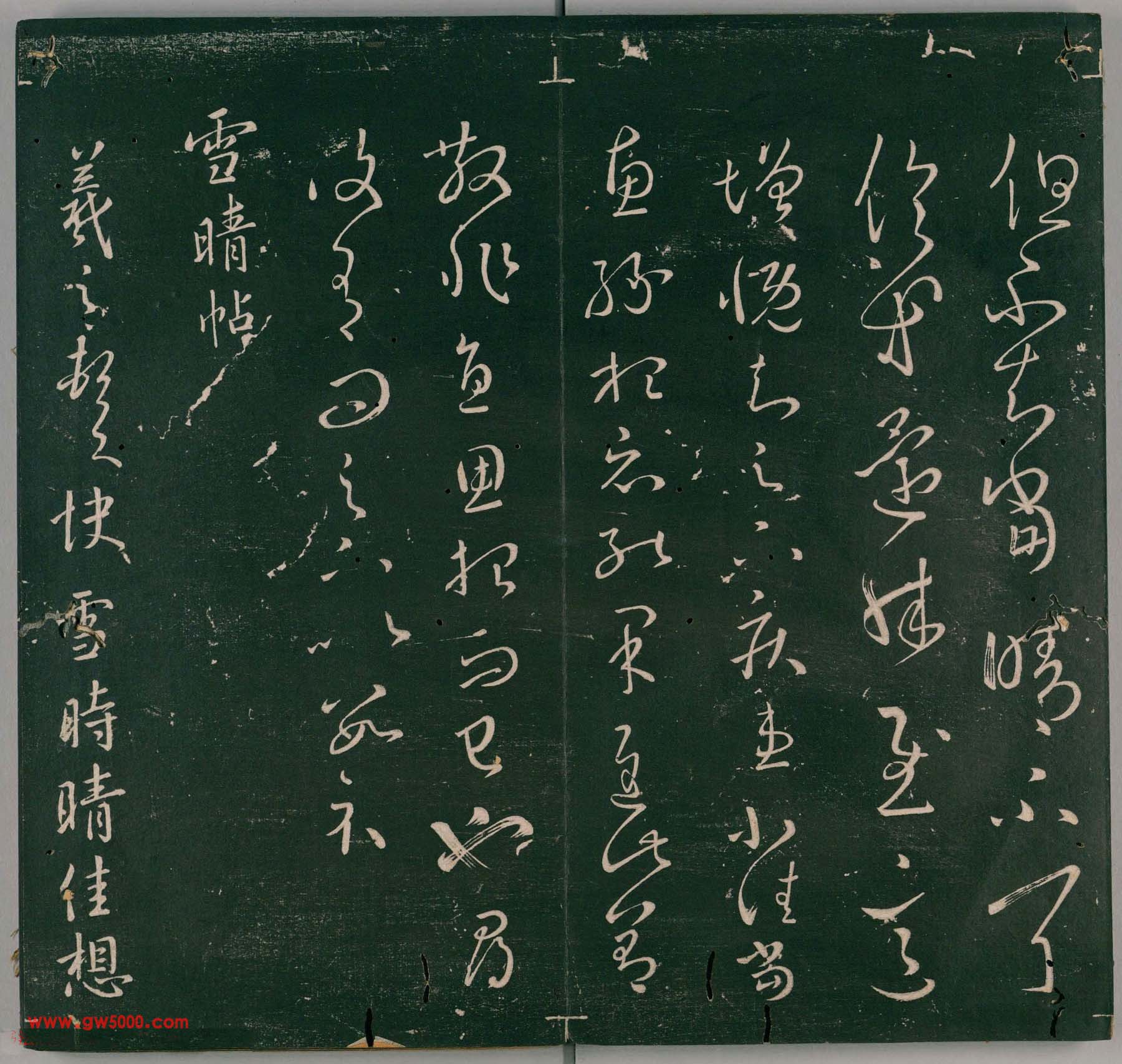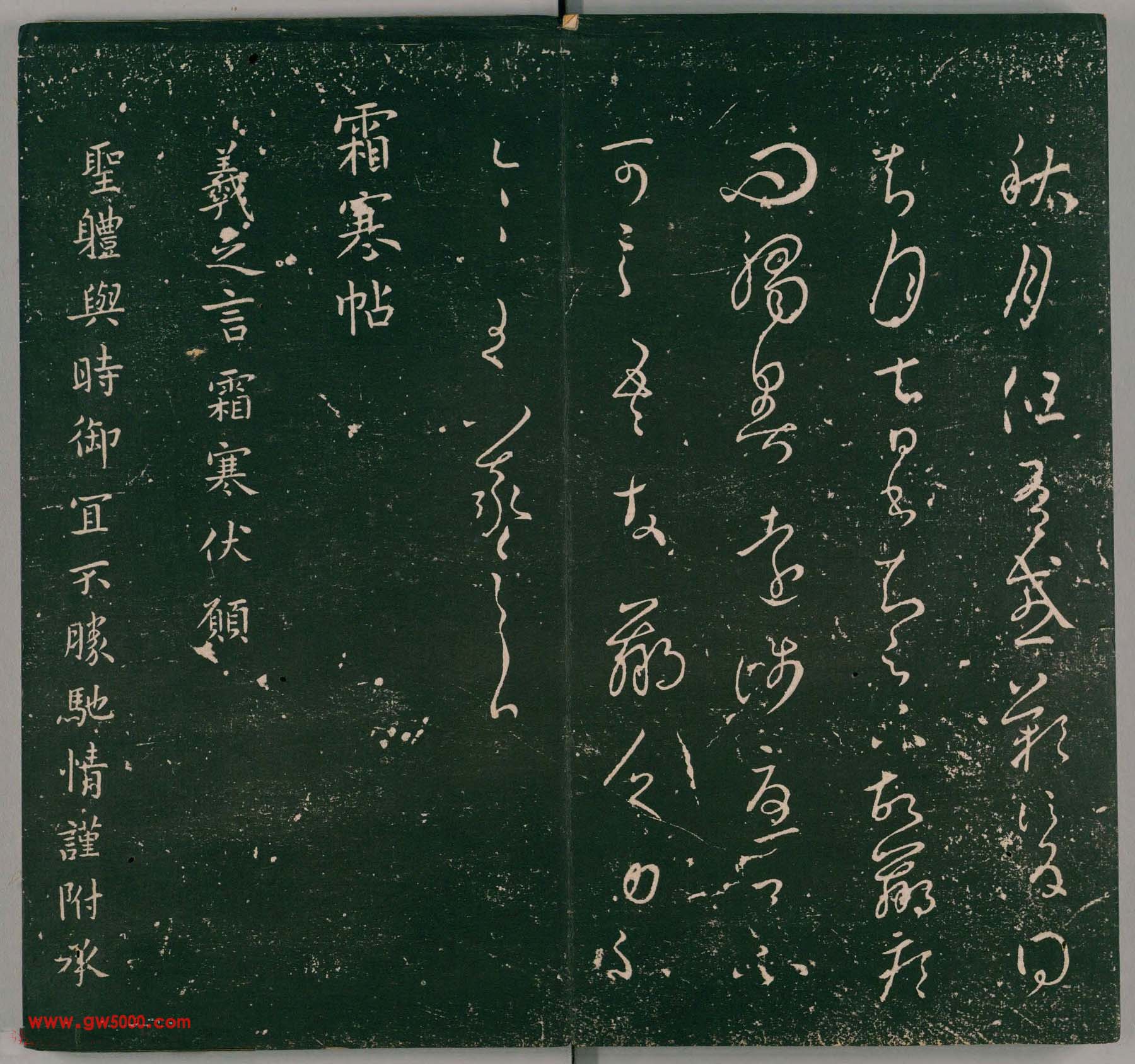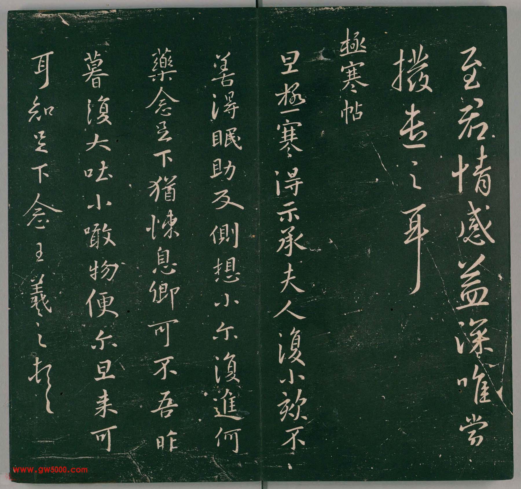 二王像:右軍(王羲之),破羌帖,成都城池帖,此郡帖,清晏帖,講堂帖,都邑帖,七十帖,兒女帖,諸從帖,宰相安和帖,昨見君歡帖,谯周帖,餞行帖,蔡家賓至帖,極寒帖,玉潤帖,積雪凝寒帖,來禽帖,毒熱帖,秋月帖,霜寒帖