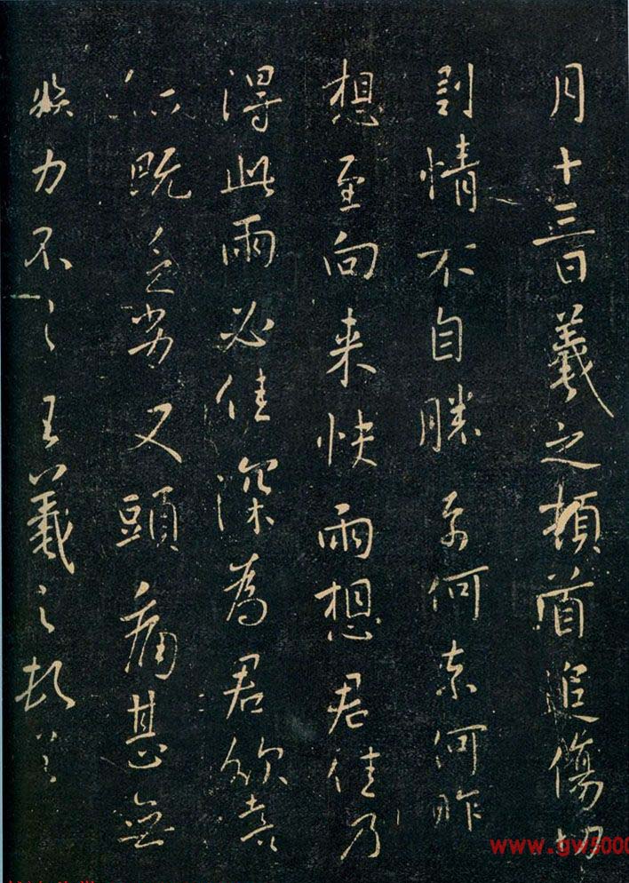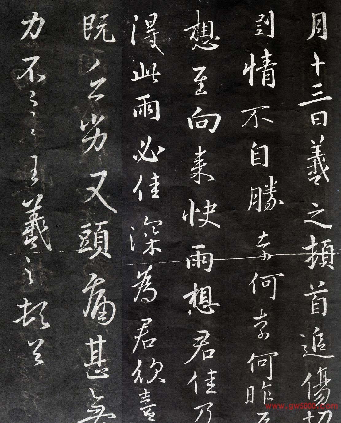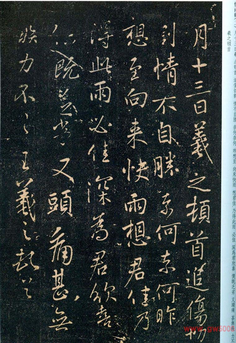 王羲之行书拓本欣赏《追伤帖》(疑伪),亦称快雨帖,共6行,三种书法拓本。