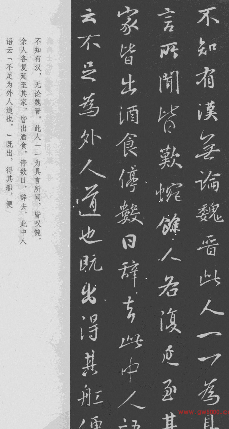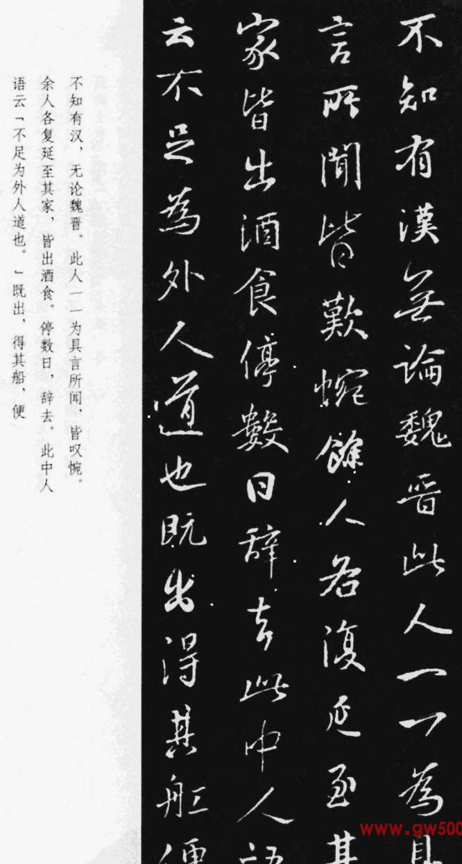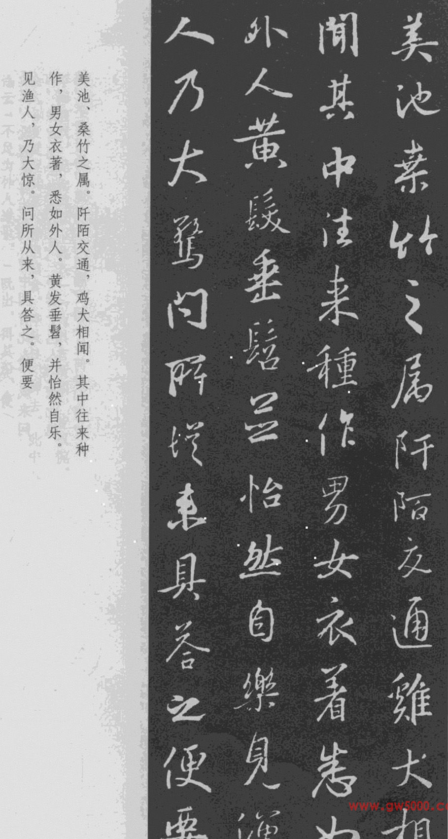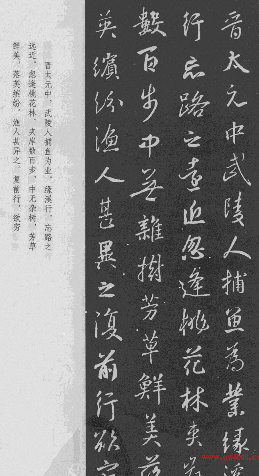 于景頫集王羲之字体《陶潜桃花源记》,附释文书法图片7张。