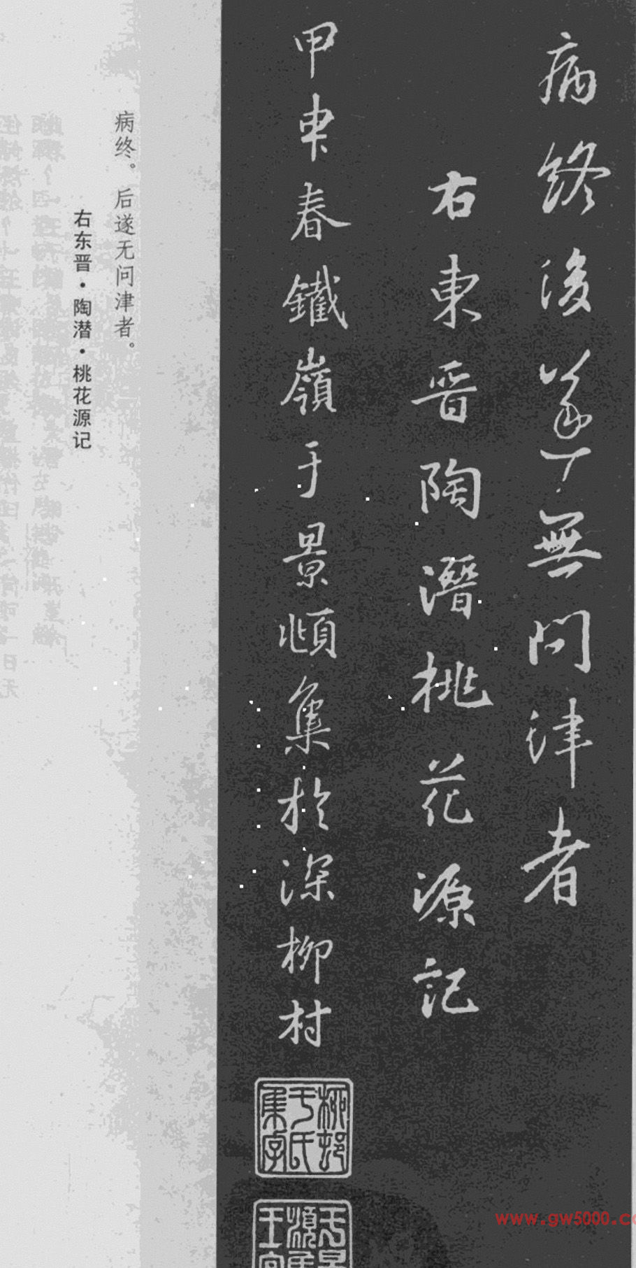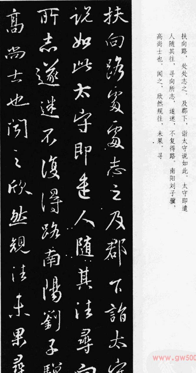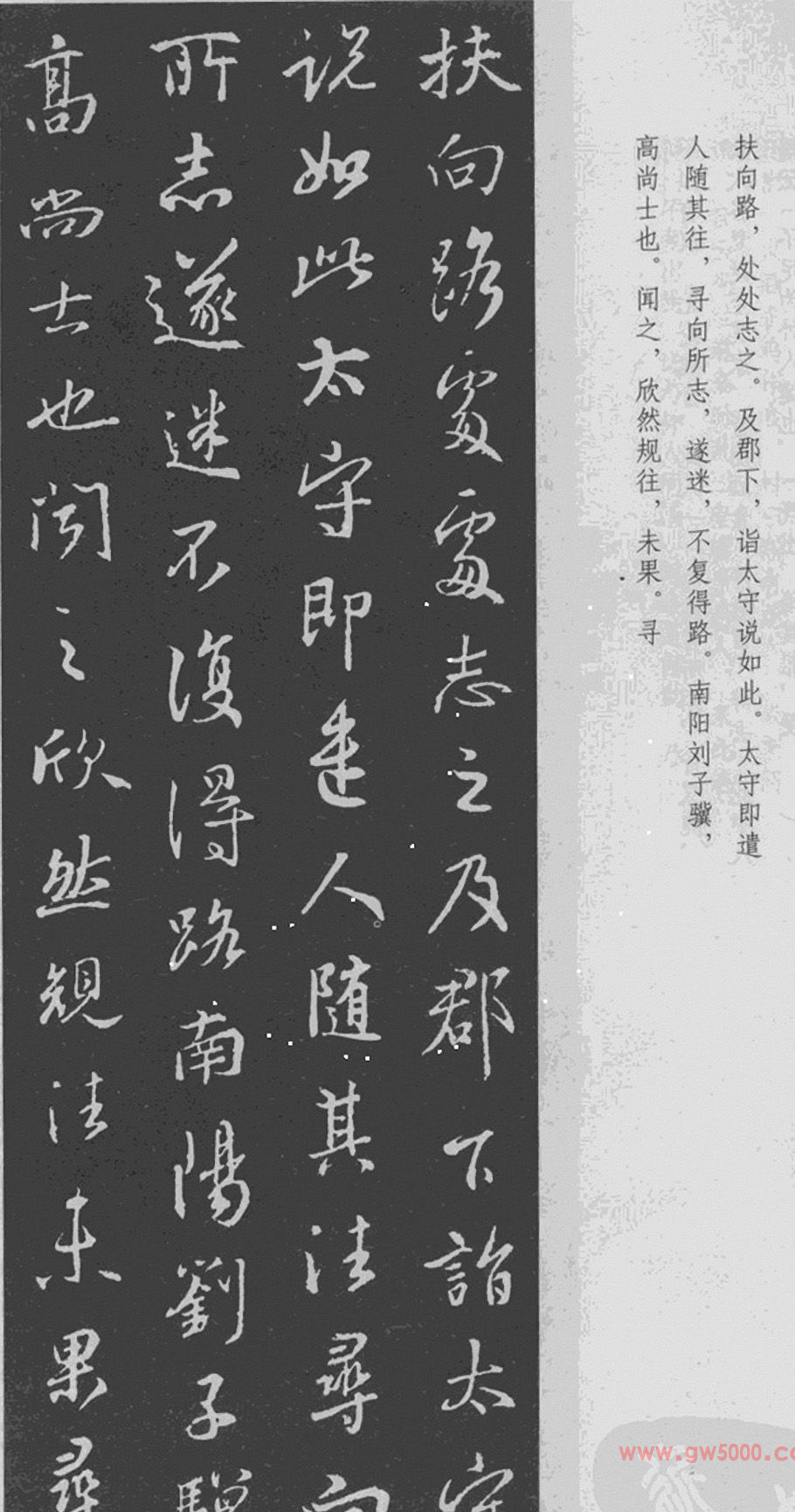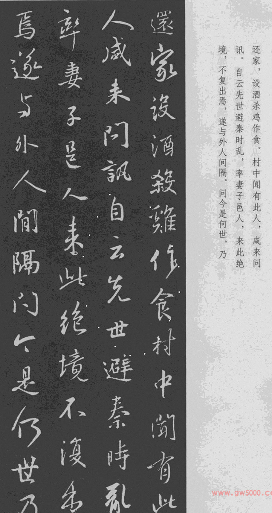 于景頫集王羲之字体《陶潜桃花源记》,附释文书法图片7张。