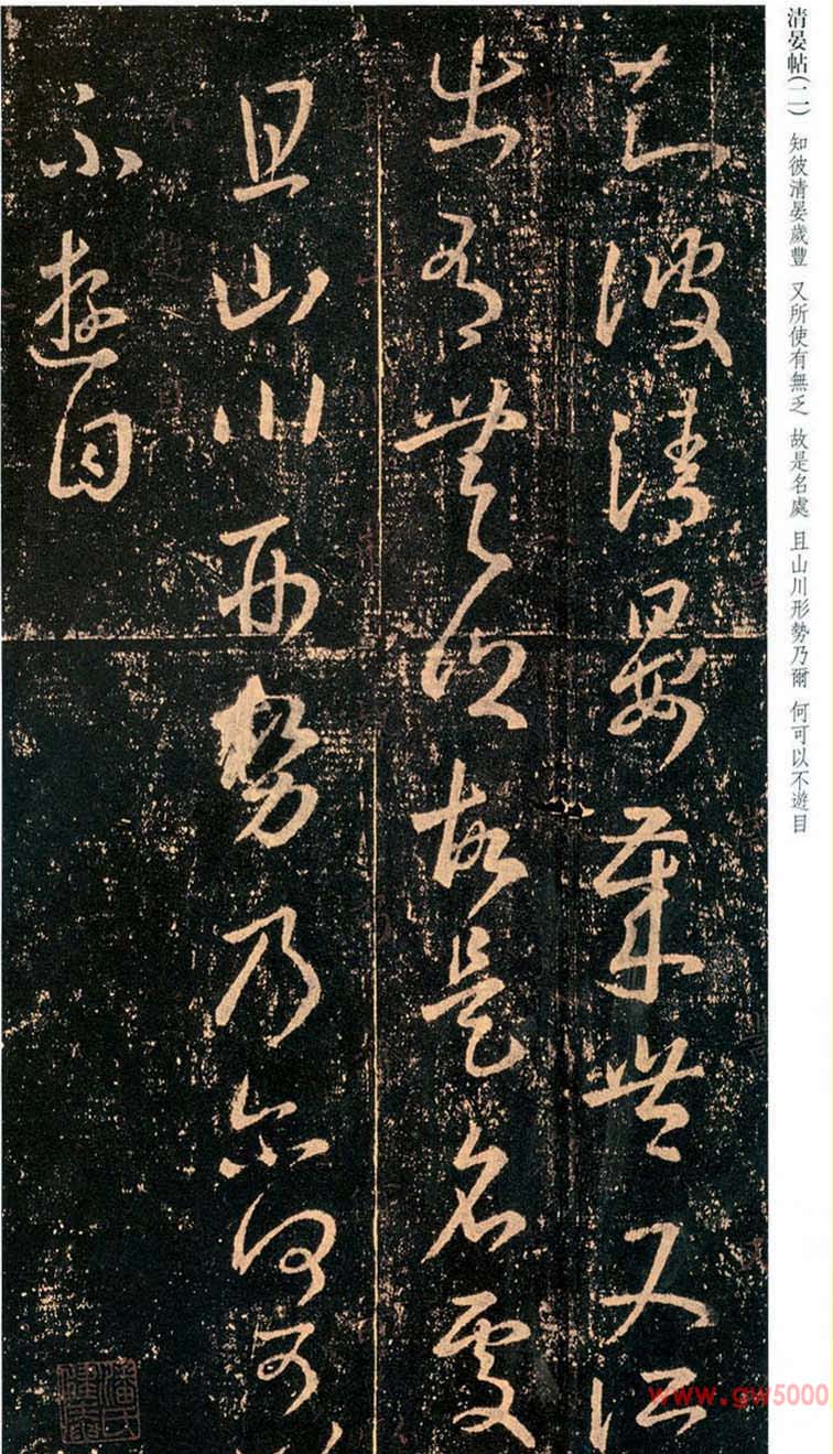 王羲之草书信函欣赏《清晏帖》三种,4行,29字。《宣和书谱》录有帖目。此函系王羲之书与周抚的信函,言及蜀地清平安和、值得游览云云。
