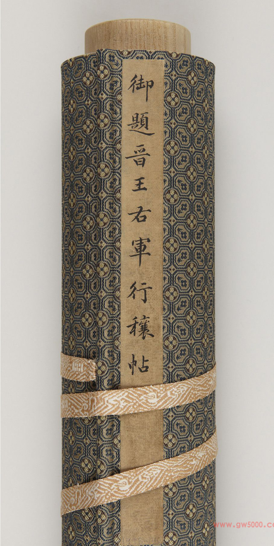 美国藏中国书法第一名品:王羲之《行穰帖》,原迹已失传。此为初唐时期的双钩填墨摹本,硬黄纸本,传为米芾再临本,24.4×8.9cm。二行,十五字,由北宋徽宗金泥题签和宣和之印,曾为董其昌友人吴廷所藏,明董其昌有多处题跋,后入清宫,乾隆有题跋题诗及鉴赏印。董其昌跋:“东坡所谓‘君家两行十三字,气压邺侯三万签’者,此帖是耶?”乾隆帝则赞它“于浑穆中精光内韫”。