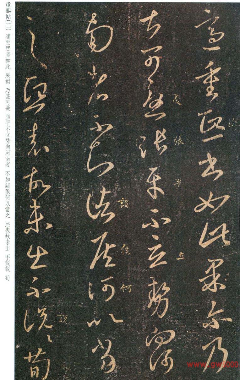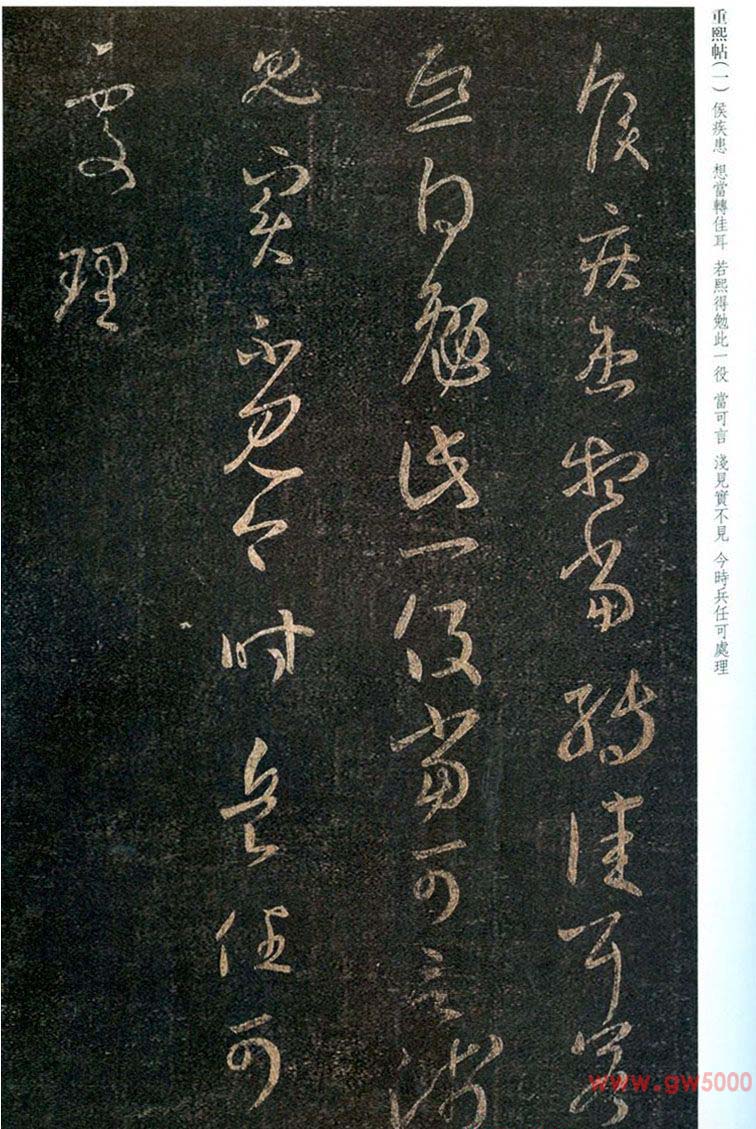 王羲之草书作品欣赏《重熙帖》2种,八行,68字。帖中“重熙”乃郗昙,“荀侯”指荀羡。所言皆升平二年(三五八)事。当年六月,前燕降将、并州刺史张平为前秦苻坚所逼,又投奔平阳。未久,荀羡攻山茌,拔之,斩前燕泰山太守。复为前燕所败。是时,荀羡疾笃,徵还,朝廷遂委任郗昙为北中郎将、徐兖二州刺史,出镇下邳。王羲之正是在荀羡徵还,郗昙出镇之前写下这一尺牍。值得注意的是,在这一年的八月间,谢万出任豫州刺史,王羲之曾与牋桓温,陈说谢万其人可处之庙堂,不能任以荒余外镇。未果,又至书谢万,嘱其与士卒同甘苦。对于郗昙出任边鄙,王羲之仍不甚赞同,故希望荀羡身体转佳,郗昙或可免此一役。王羲之反对谢万、郗昙出镇边鄙,是知人之论。升平三年三月,谢万、郗昙迎击前燕慕容,果然战败。《晋书》载王羲之有鉴裁,非虚言。《宣和书谱》著录《重熙帖》帖目。此帖亦为《大观帖》、《澄清堂帖》、《玉烟堂帖》收刻。