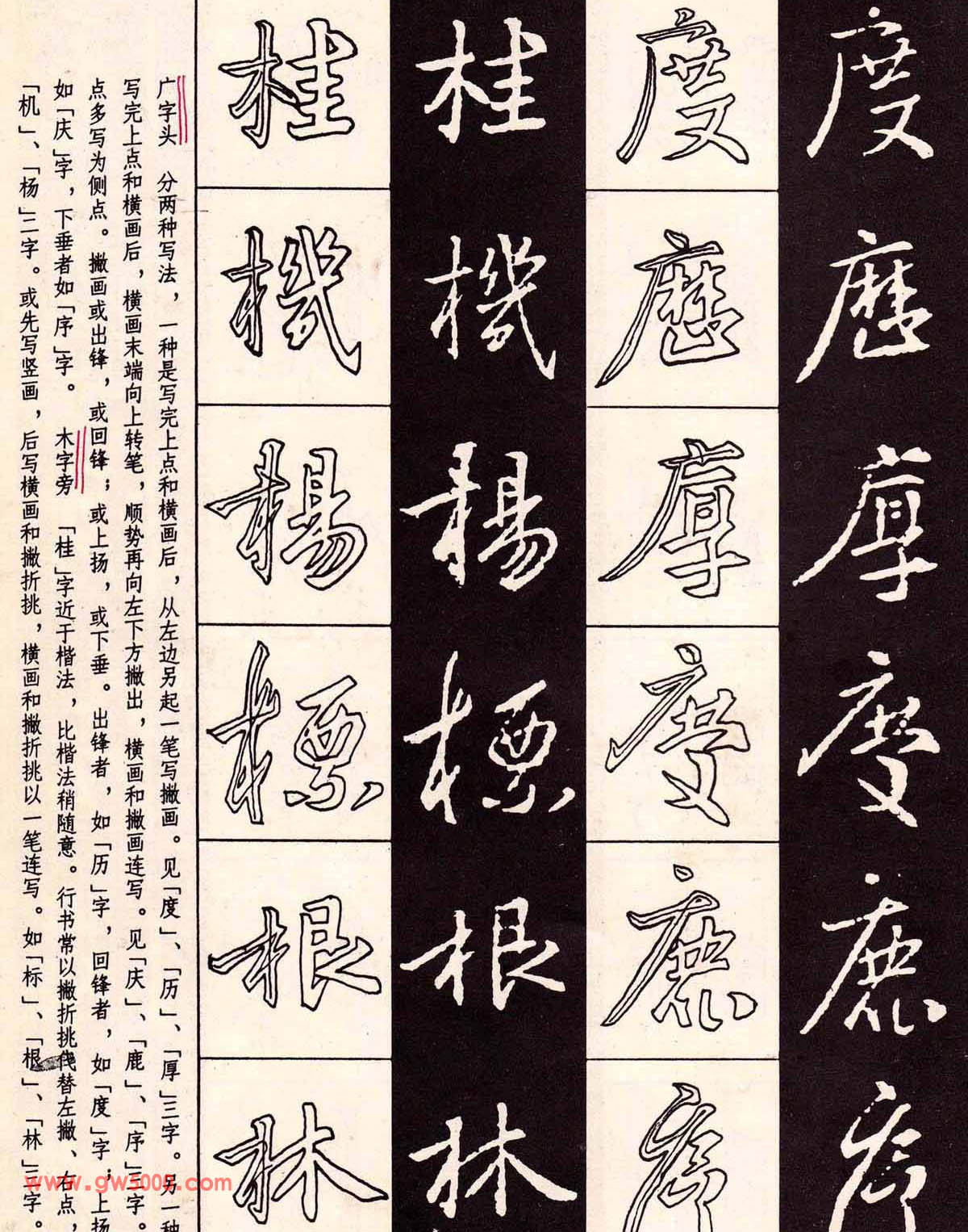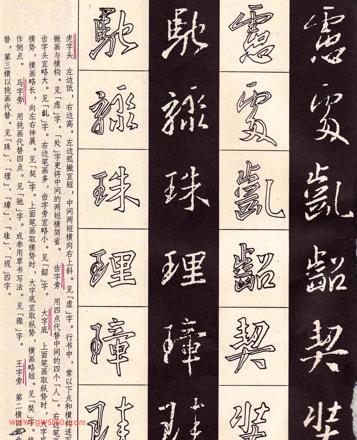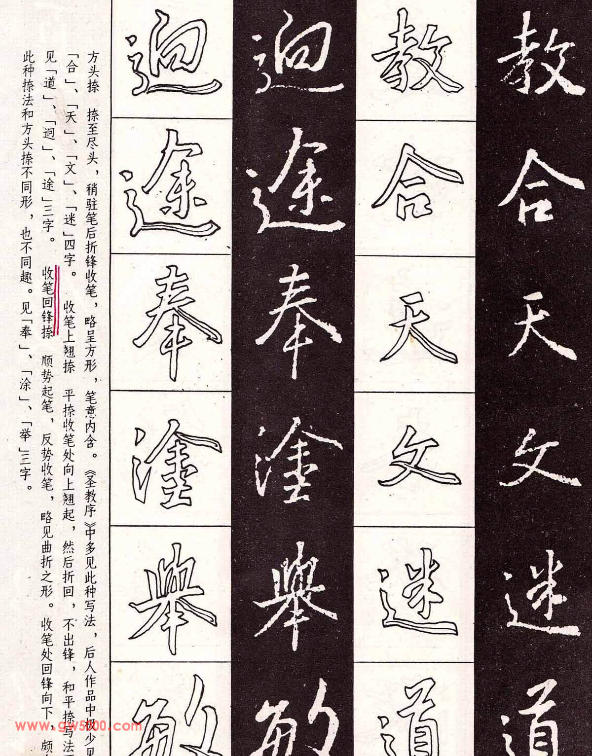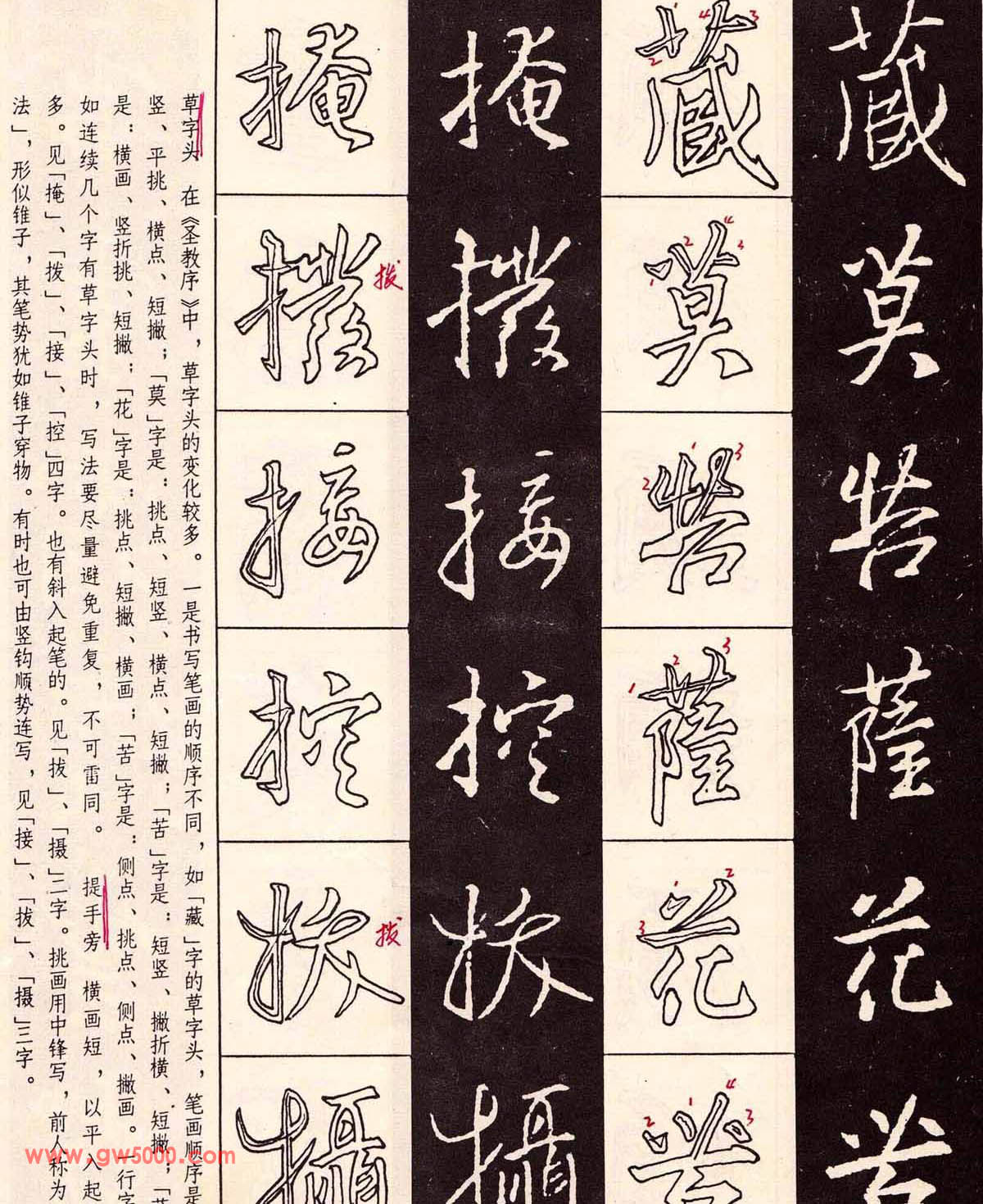 字帖分享:骆恒光编著《王羲之圣教序及其笔法》,西冷印社出版社。图文对照--说王羲之《圣教集序》笔法、笔顺、偏旁部首、结体之变化......扫描书法字帖图片40张。