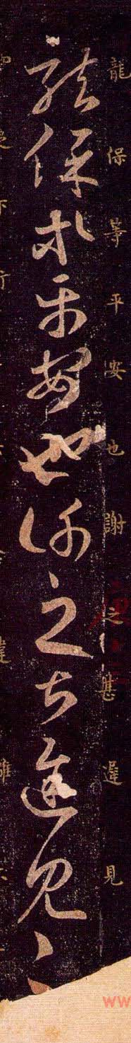 王羲之草书欣赏《龙保帖》古代临本。纸本,纵二五厘米。二行,十二字。英国大英图书馆藏。