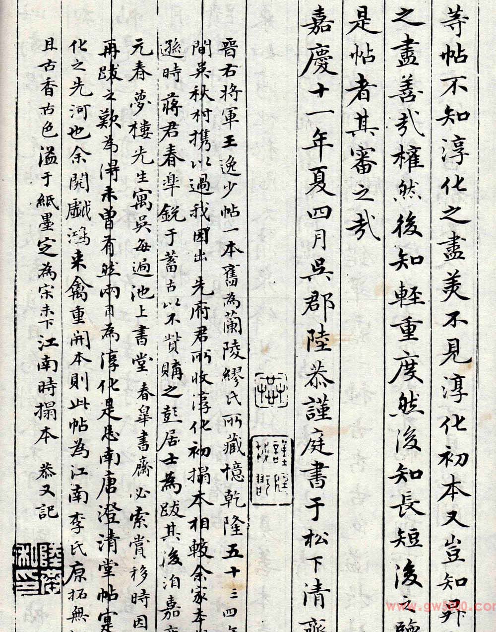 该册经清缪曰藻、蒋春皋、陆谨庭等递藏,有彭绍升、王文治、潘奕隽、陆谨庭等跋。过去一直不知此为何帖,因有清乾隆初缪曰藻签题“宋拓王右军书”而得名。