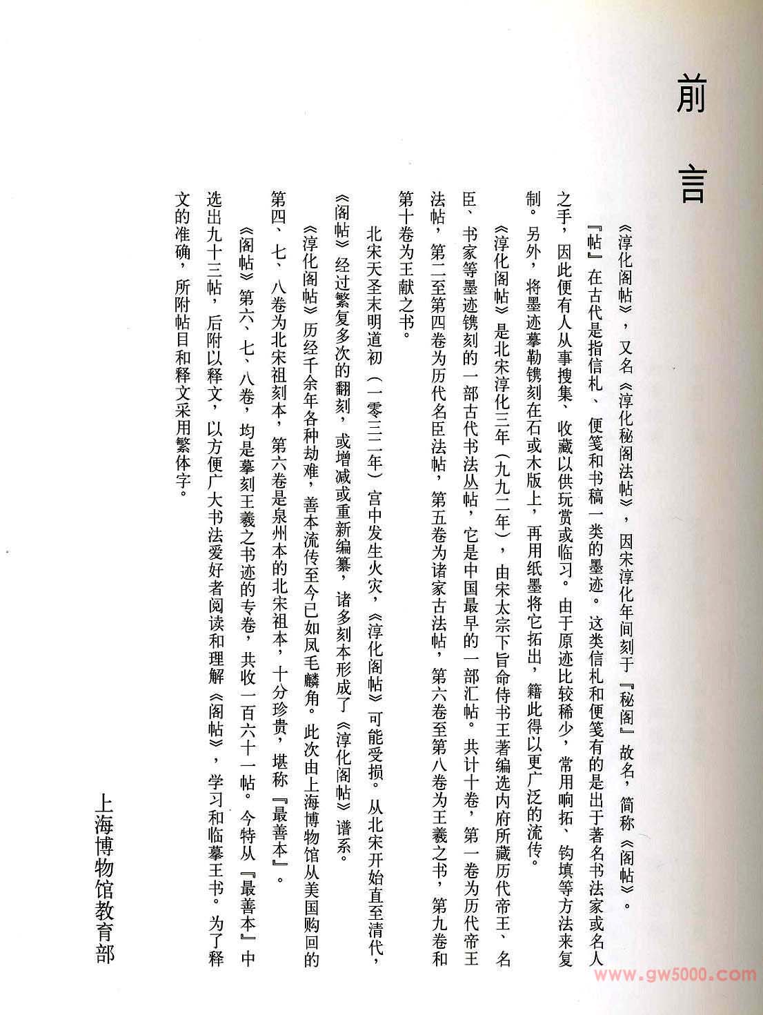 淳化阁帖最善本王羲之法书选-上海博物馆教育部;草书书法字帖图片107张。