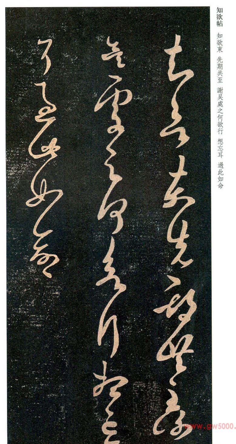 王羲之草书作品《知欲东帖》,3行,21字。被米芾、黄伯思、王澍三家判为伪帖。王澍云:“《知欲東帖》與上《適得書》,同是一手偽作。後面《差涼》、《奉對》、《汝不》等帖皆同。雖筆較清拔,要之皆偽作也!” 此帖收刻于《大观帖》、《绛帖》《淳化阁帖》。