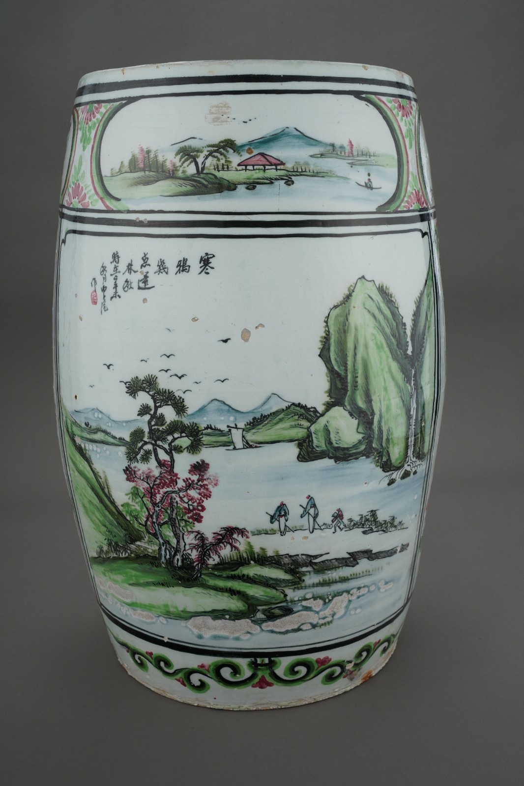 民国釉下五彩鼓凳