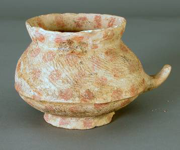 编号为M131:19的陶钵,不仅上腹及内壁通施红彩,在器足底部还发现有“一”状的刻划符号。这是目前出土的唯一一件带刻划符号的昙石山文化彩陶。