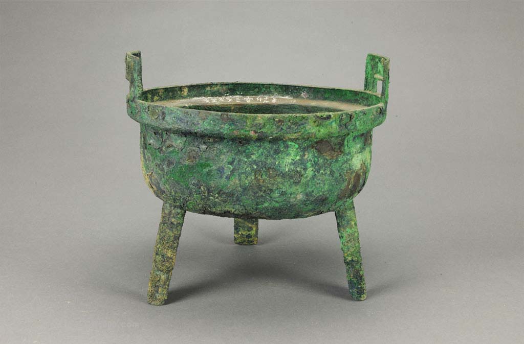 口沿上刻有“重十六斤容三斗大半斗”铭文。