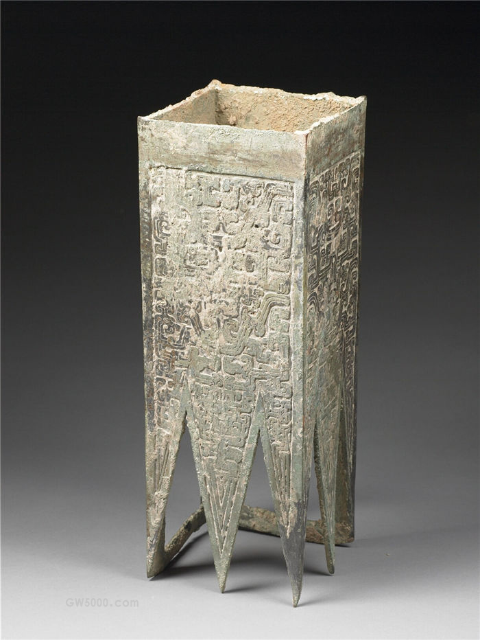 建筑构件。长方筒状,两端透空,一端相连的两面有三枚锯齿,其它两面透空,中有隔梁。正面及底面满饰蟠虺纹。据研究,铜构件用于连接宫殿梁柱,起加固和装饰作用。该铜构件对研究先秦建筑史具有重要意义。