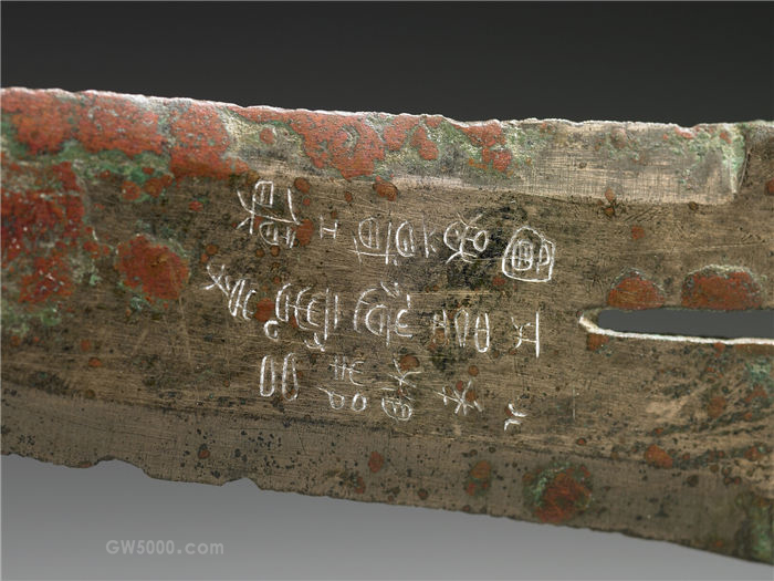 勾杀兵器。援上扬,无中脊,内平直,中有一穿,胡下部残折,栏侧仅存两穿,援胡均有刃,内部正面竖刻铭文三行十五字,“八年,相邦吕不韦造,诏事图、丞蕺、工奭。”背面横铸“诏事”二字,又刻有“属邦”二字。该戈形制独特,铸造时间明确,铭文内容丰富,是研究战国秦兵器和工官制度的重要实物资料。
