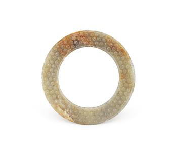 战国中晚期(距今约2320年),九连墩1号墓出土,涡纹瑗,直径11.6,孔径7,厚0.45cm