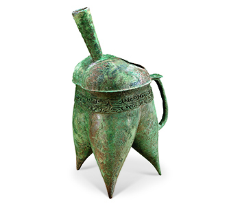 通高36cm顶部有管状冲天流,流底两边的乳钉与构成兽面。袋足中空,腹部饰饕餮纹,侧面为夔纹。盉盛水以调和酒味浓淡。