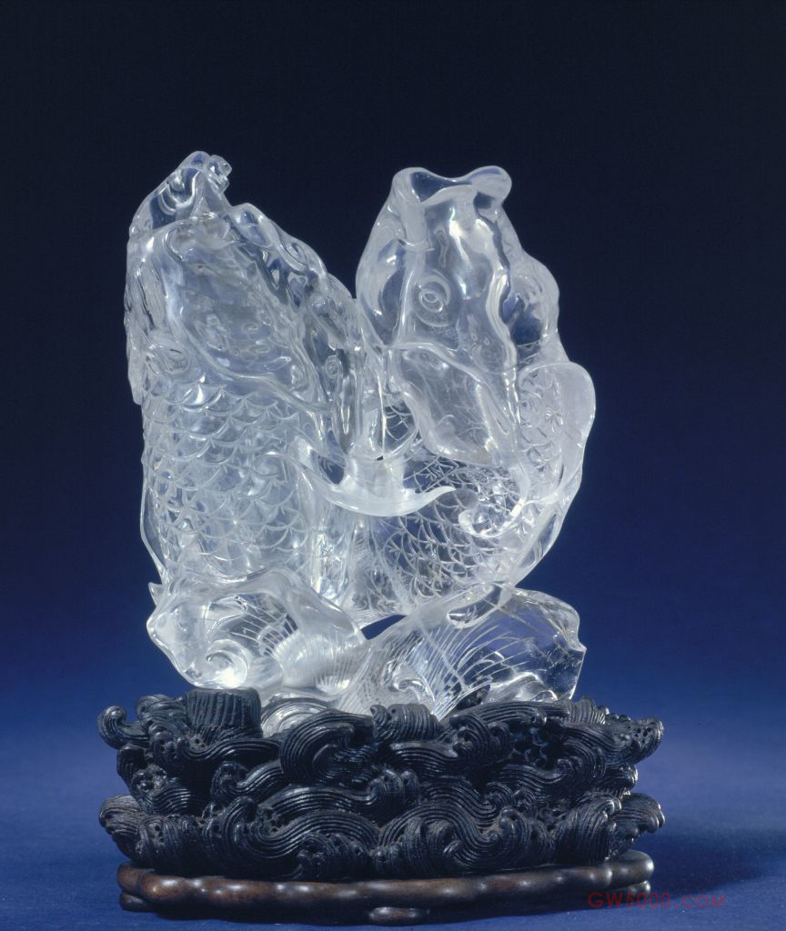 水晶双鱼花插,清,高14.8厘米,最宽11厘米。