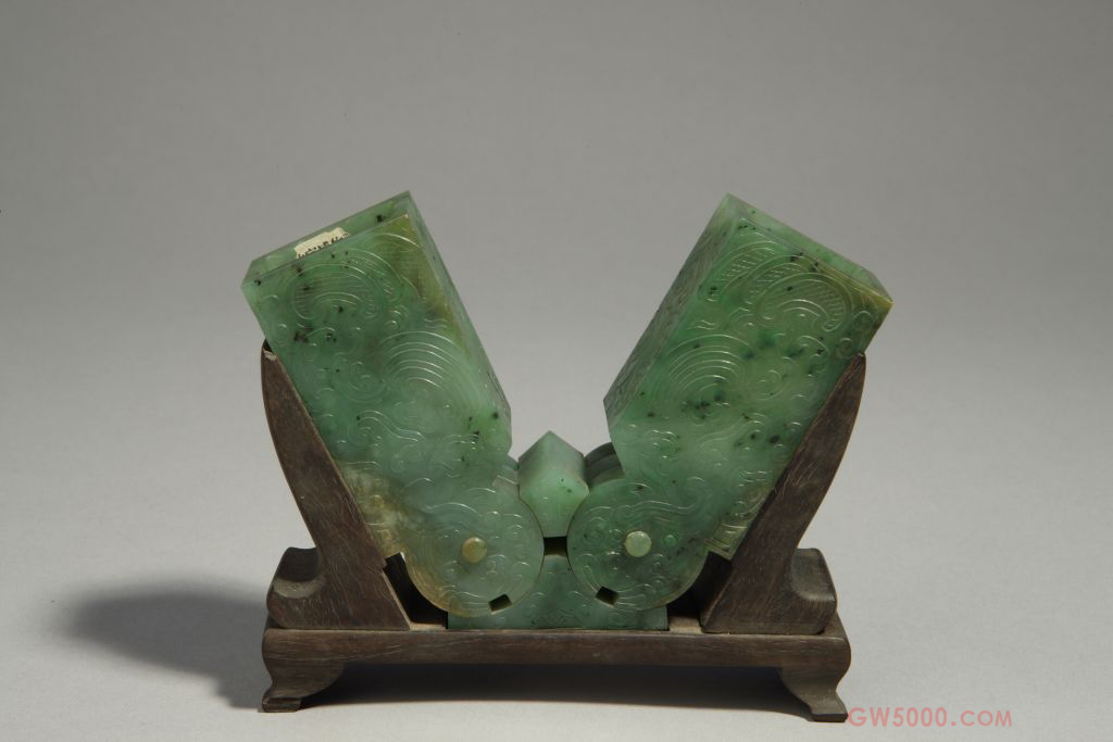 碧玉是新疆和阗软玉中的一个品种,软玉主要有白玉、青玉、碧玉、墨玉、黄玉等品种。其中碧玉色如菠菜叶,略有透明感,呈油脂或蜡状光泽。由于所含成分不同,颜色和结构均不如其它软玉均一,色彩淡的呈菜色,色彩深的呈墨绿色,还有斑杂的大环斑状。兽面是古代人们想象中的怪兽的面部,将其刻画在器物上所形成的纹饰称兽面纹。宋代的学者把兽面纹称为饕餮纹。