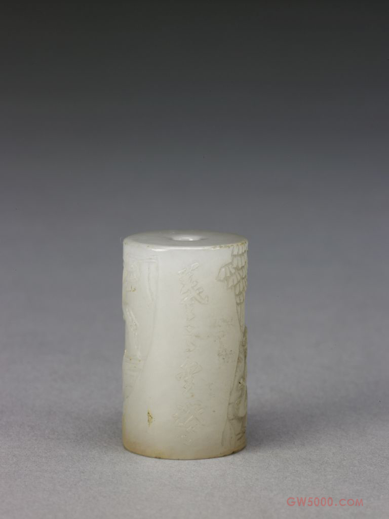 白玉王羲之爱鹅勒,清,高2.9厘米,直径1.6厘米。