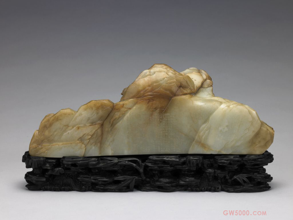 玉器表面琢碾带有叙事性和图画性装饰图案的做法,始于宋代。明代玉图画更为盛行,多将山水、人物、花鸟、典故、诗文意境移植到玉质器皿的表面作通景式的表达,但这种表现多是平面的。玉山子作为室内陈设之一,在清代十分流行,既有硕大无朋重达万斤的大禹治水图山子,也有精巧雅致可收纳于百事件中者,大小适中的案头陈设山子更是不胜枚举。玉山子多取材绘画、诗文、历史故事,精心布局,立体展示,有的更镌刻诗文、印章,成为集诗、书、画、印于一体的极富文人雅趣的三维雕刻艺术。