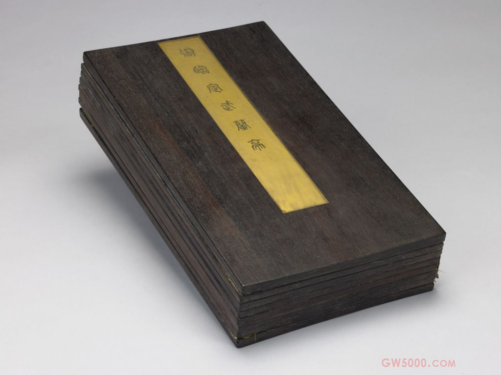 御制定武兰亭木嵌玉字册,清乾隆,长29.7厘米,宽17厘米,厚6.1厘米。