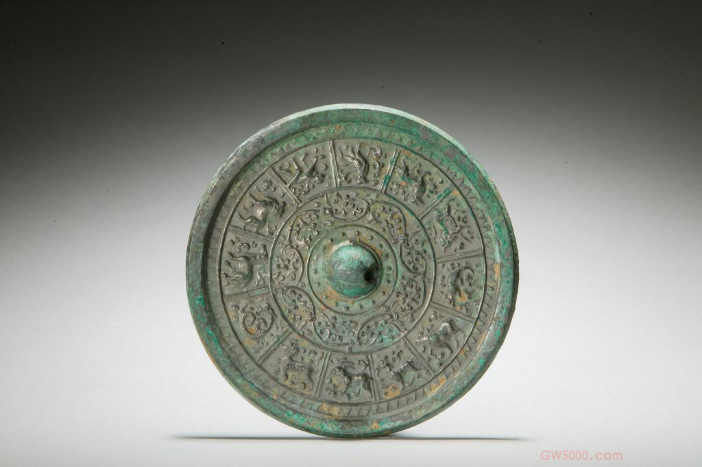 镜圆钮,钮座周围饰连珠纹。内区饰缠枝纹,外区饰十二生肖,以双线相隔。素缘。