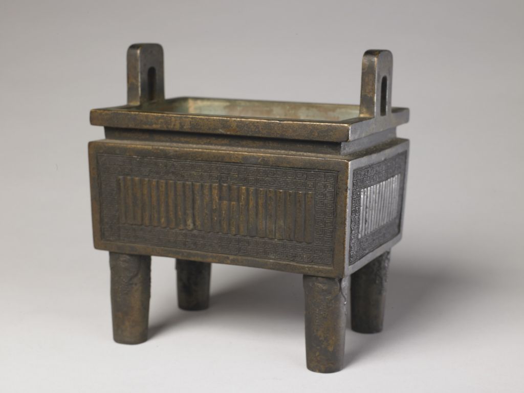 雷纹四足方鼎,清乾隆,高14.8厘米,宽13.3厘米。