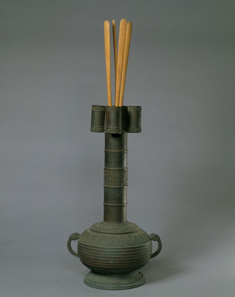 铜投壶,清乾隆,通高55.8厘米,口径7.3厘米。清宫旧藏。