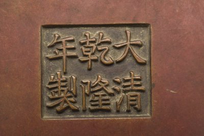 此炉造型敦厚,铜质细腻。底部款识极精致。世上流传并有国朝年号款的乾隆器物其款识分为两种:一是双龙环绕的篆书款“乾隆年制”,二是楷书款“大清乾隆年制”,而清宫旧藏宣铜器中所见款识只有后一种。若乳头状之器足。商周时期青铜器的一种,原为食器,用以烹煮或盛放肉食,后逐渐成为祭祀、征伐、丧葬等活动中陈设的一种礼器。同时,鼎也是贵族进行宴飨、祭祀等礼制活动时最重要的礼器之一,所谓“钟鸣鼎食”,即指代贵族。此外,鼎也被作为王权的象征,《左传》宣公三年记楚庄王问鼎中原,即窥视中原王权之意。鼎数目的多寡有着严格的等级区别。即:天子九鼎,诸侯七鼎,大夫五鼎,士三鼎。