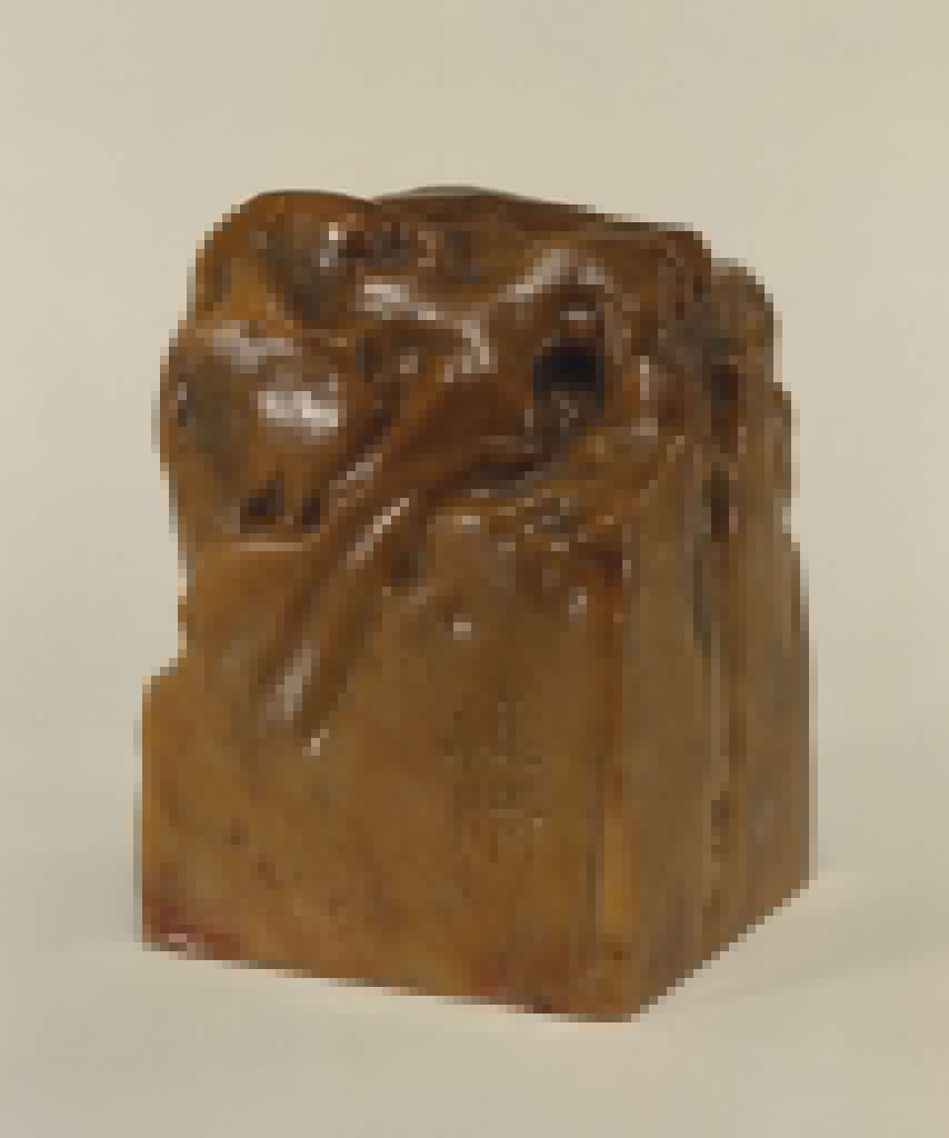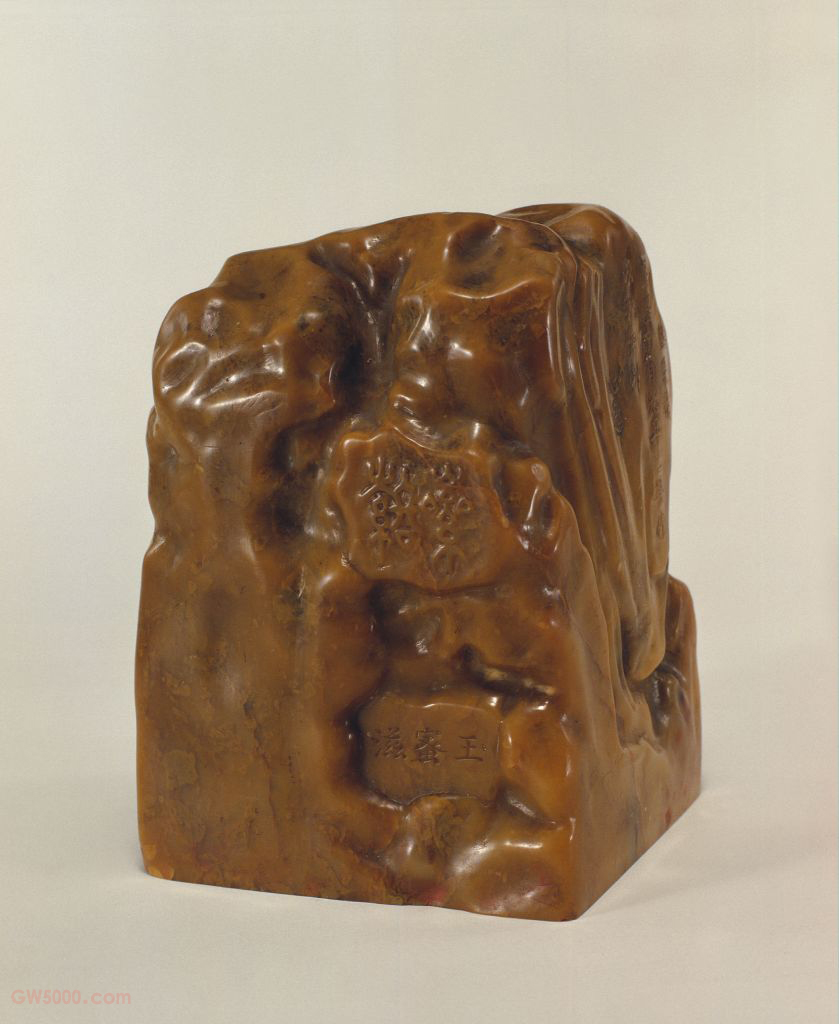 “咸丰御览之宝”,清咸丰,寿山石质,随形长方形玺,汉文篆书。面宽9.3厘米,长9厘米,通高13厘米。 此玺三面都有题款,分别为: “惟清”、“坚栗精密,泽而有光。五色发作,以和柔刚。心逸”、“玉蜜滋”。其中“心逸”为题款者的名号,可知此玺原非宫中之物,被宫廷收藏后才被改刻为咸丰帝御用宝玺。叶腊石之一种,产于福建福州市郊寿山,因名寿山石。质地细腻,色彩丰富,其中以各种透明或半透明的冻石品质为高。寿山石是雕刻和治印的优良材料。