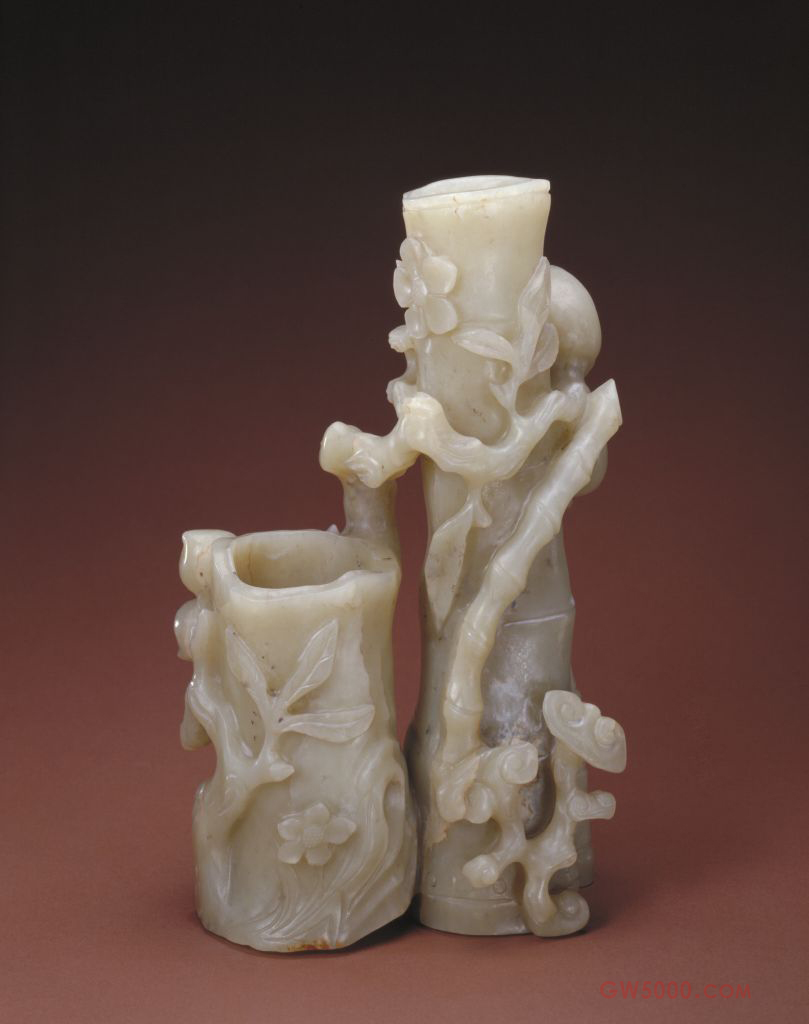 笔插是文房用品,管内可插笔或其它物品。明代,室内陈设及文房用品中多有此类作品。笔插取竹、桃、兰、芝之形,以象征君子之德。此作品造型高低错落,生动逼真,是明代玉器中的精品。文房用具,用途似笔筒,但较笔筒插笔少,同时又可用作笔架。清代玉器中有白菜形笔插、荷花形笔插等,它们既可插笔,又是非常有趣的文房清玩。蕈的一种。食用灵芝,有强筋骨、益精气的滋补作用。灵芝在中国古代民间信仰中具有吉祥长寿的寓意。灵芝的出现,预兆着国泰民安,世事昌达,所谓“圣人休祥,有五色神芝含秀而吐荣”(《神农本草》)。《瑞应图》也称:“芝英者,王者德仁而生。”灵芝图案多出现于各种材质的古代艺术品和建筑彩画中。