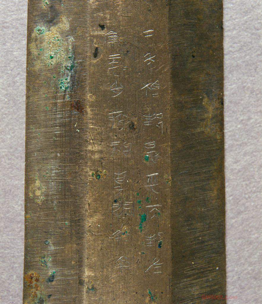 铭文大意:记在二年,宰相春平侯监造,邦左库工师赵瘠主造,冶事开铸造。铍(音皮),长兵器,双刃,锋部较长,与长剑相似;有茎,夹以长『0042』,用法及形状如长矛。《方言》九:“锬谓之铍。”注:“今江东呼大矛为铍。”剑身前端的尖突称作“锋”。剑身中央凸起的棱或凹陷的槽称作“脊”。职官称谓,为工匠之长。《吕氏春秋·季春纪》载:“命工师,令百工,审五库之量,金铁、皮革、筋、角齿、羽箭干、脂胶、丹漆,无或不良。”即冶工、工匠,该器的具体铸造者。县长官,即县宰,王莽始建国元年,改“县令长曰宰”。