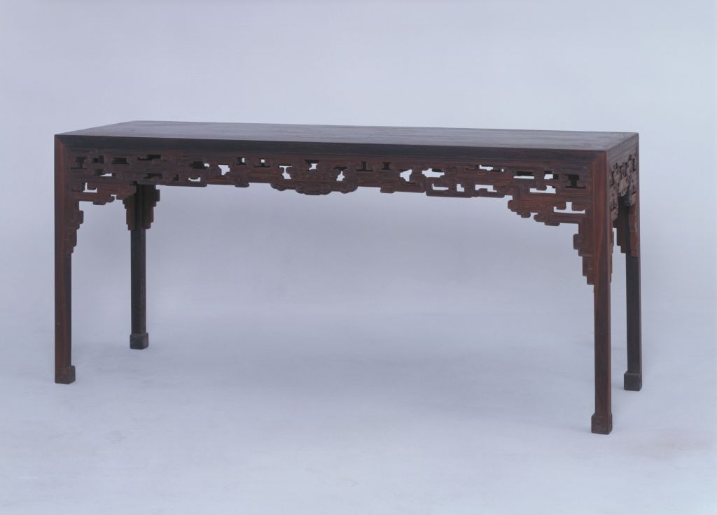 紫檀雕花长桌,清中期,高93.5厘米,长208厘米,宽64.5厘米。